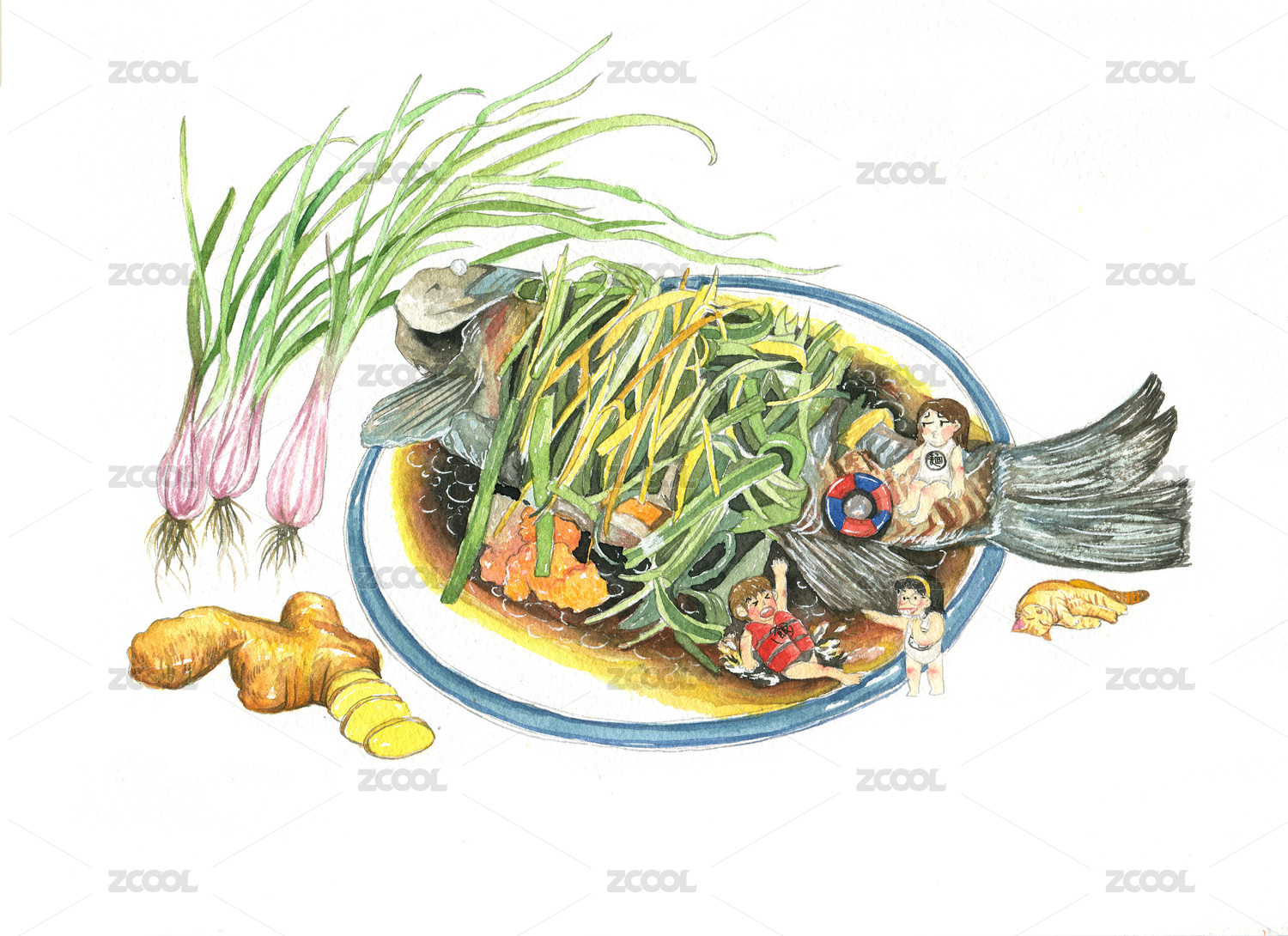 水彩食物之清蒸魚粵式家常菜