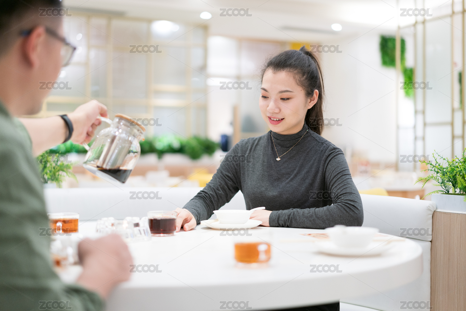 和朋友吃飯中的美女