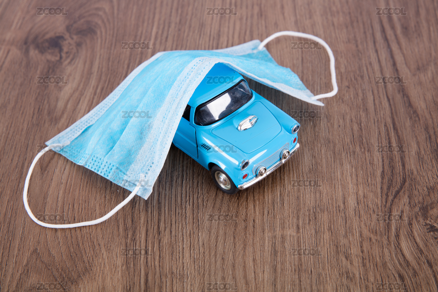 藍(lán)色小汽車模型和藍(lán)色口罩