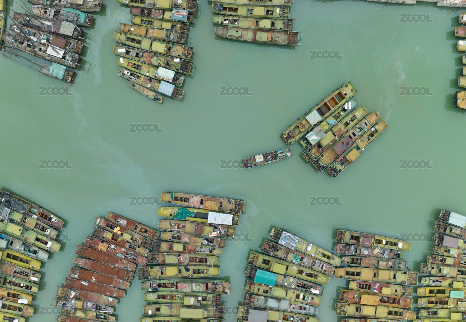 4K航拍蘇州太湖漁港村,漁船停泊在港灣里