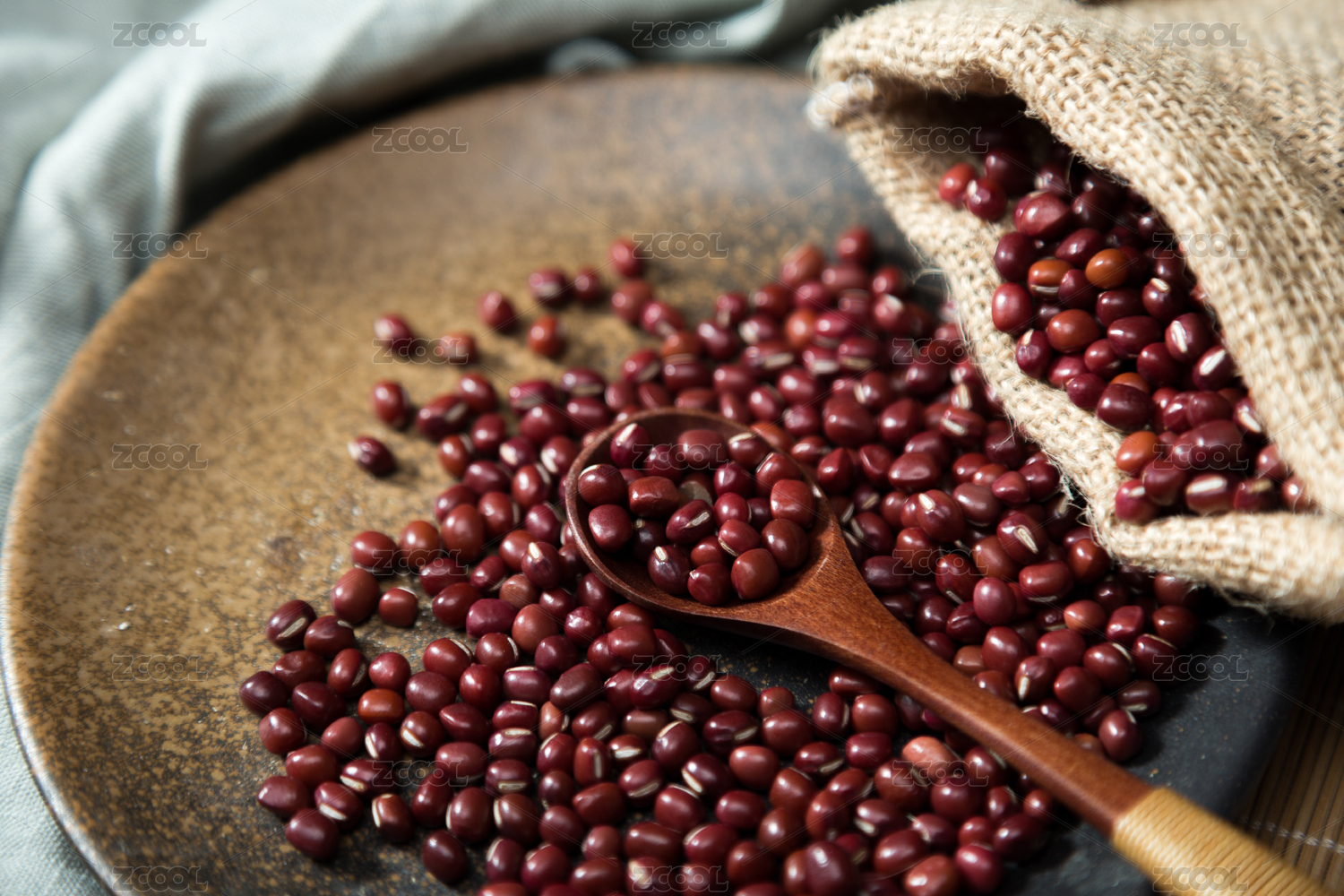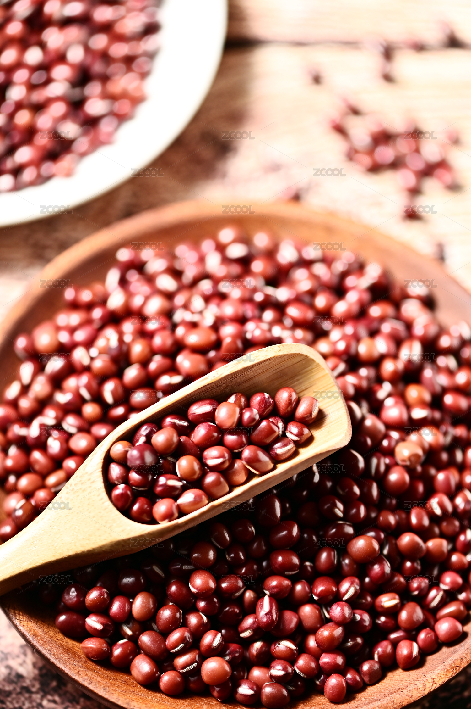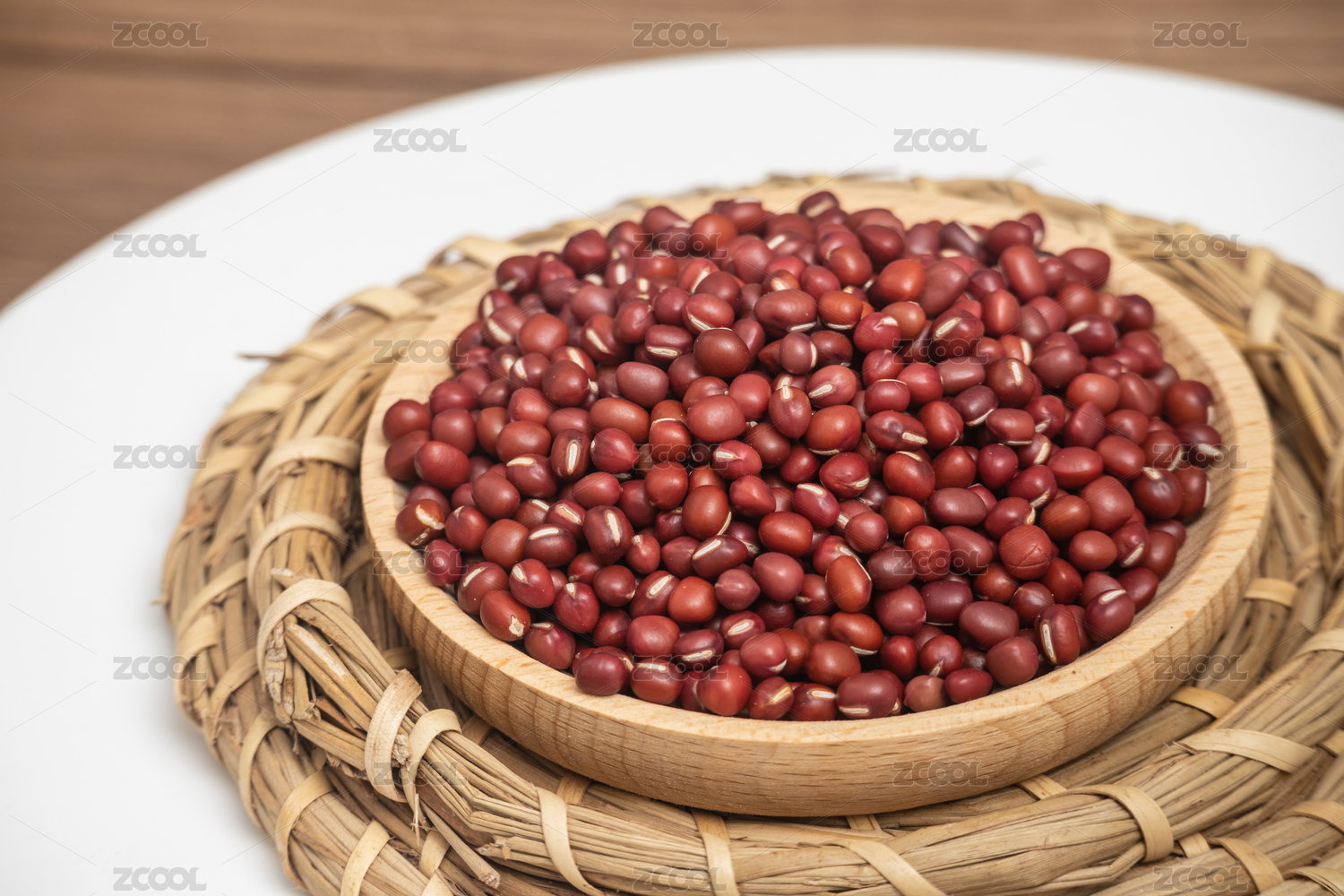 桌面盤子里裝滿紅色赤豆紅豆豆子食物果實
