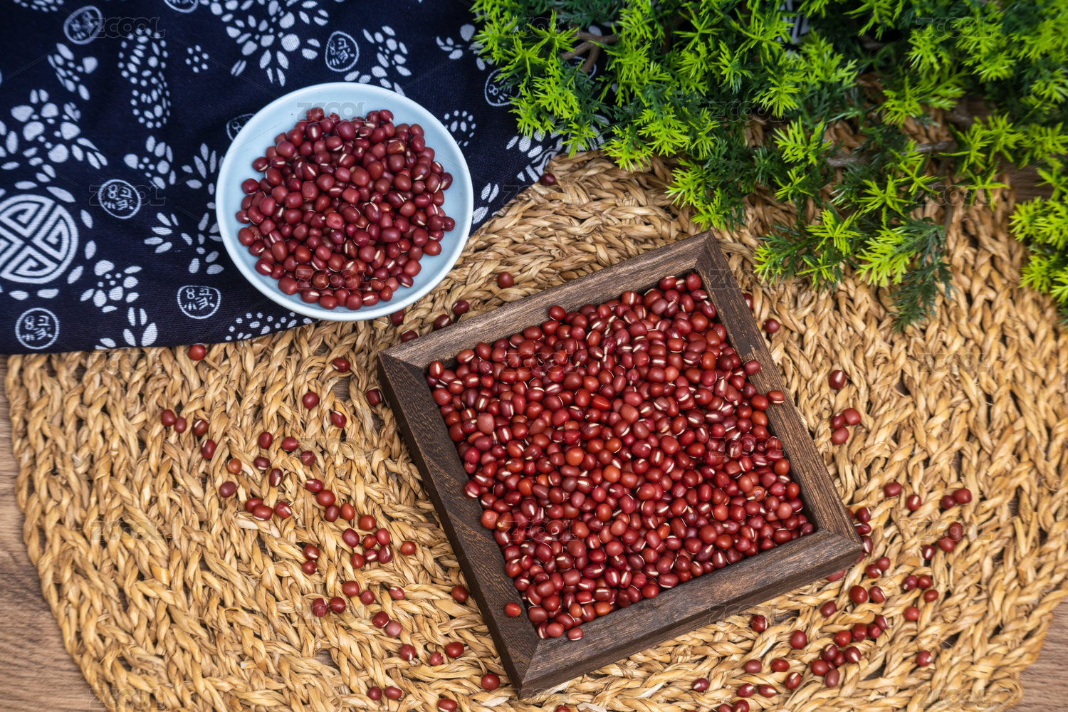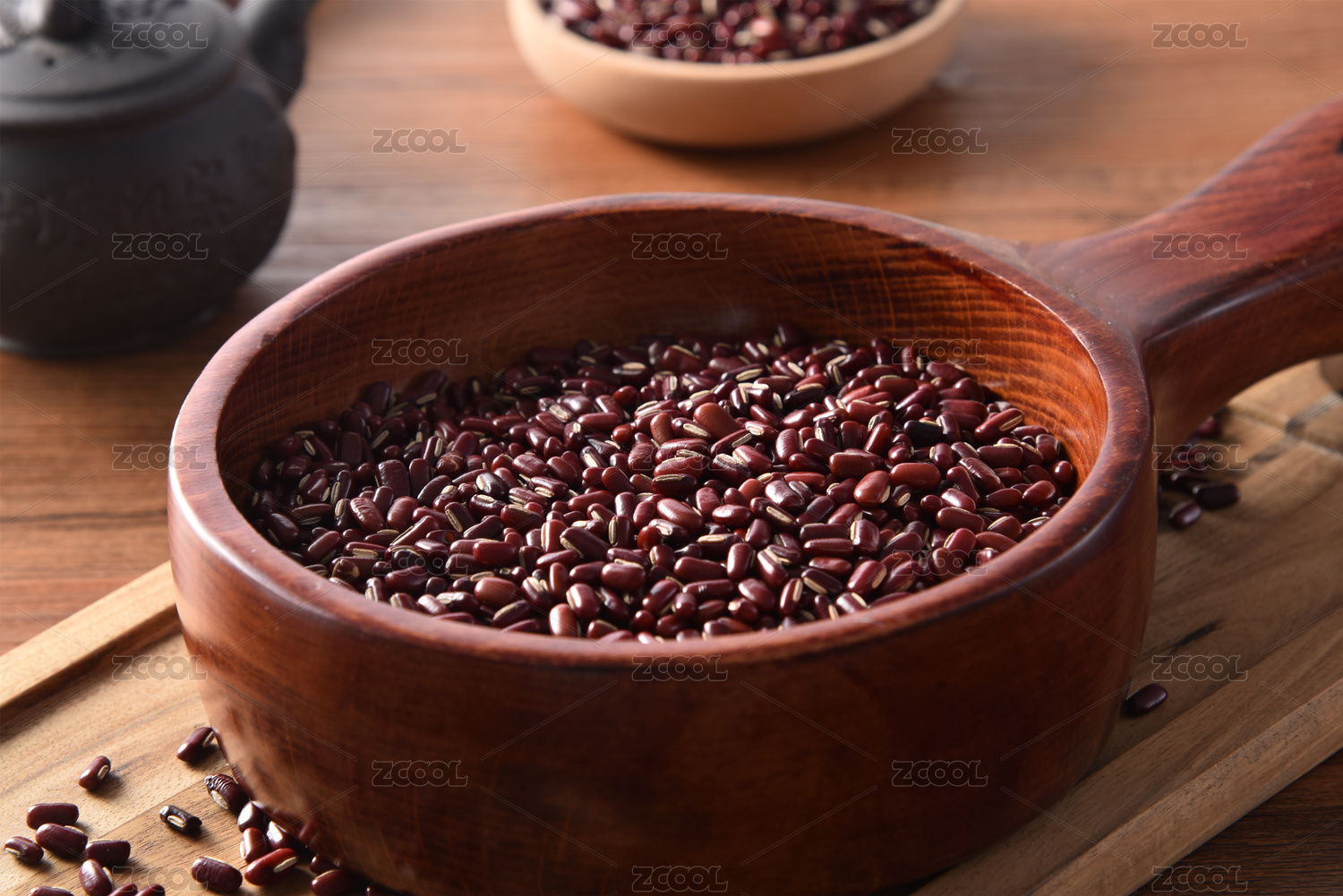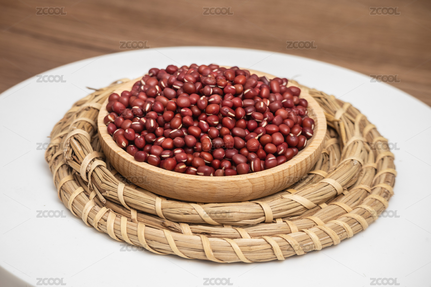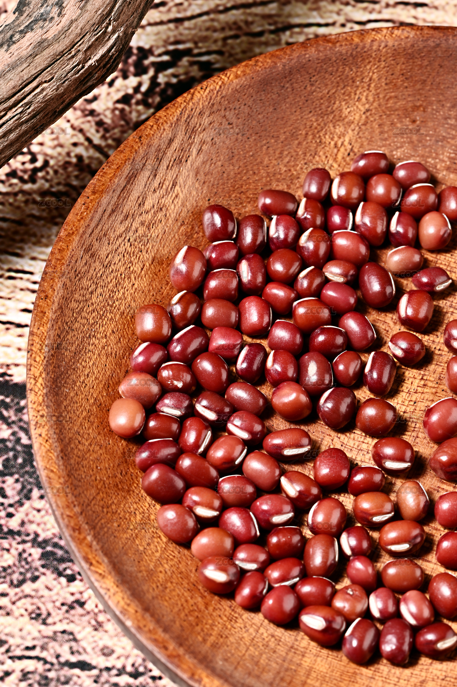 桌面盤子里裝滿紅色赤豆紅豆豆子食物果實