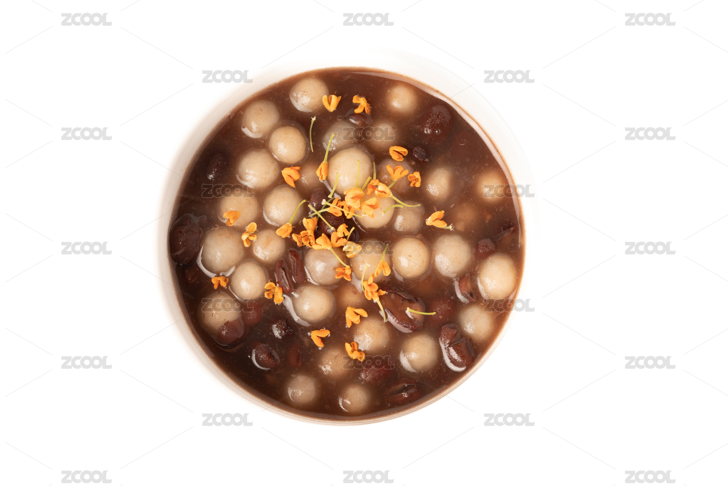 白色背景下的赤豆元宵配桂花