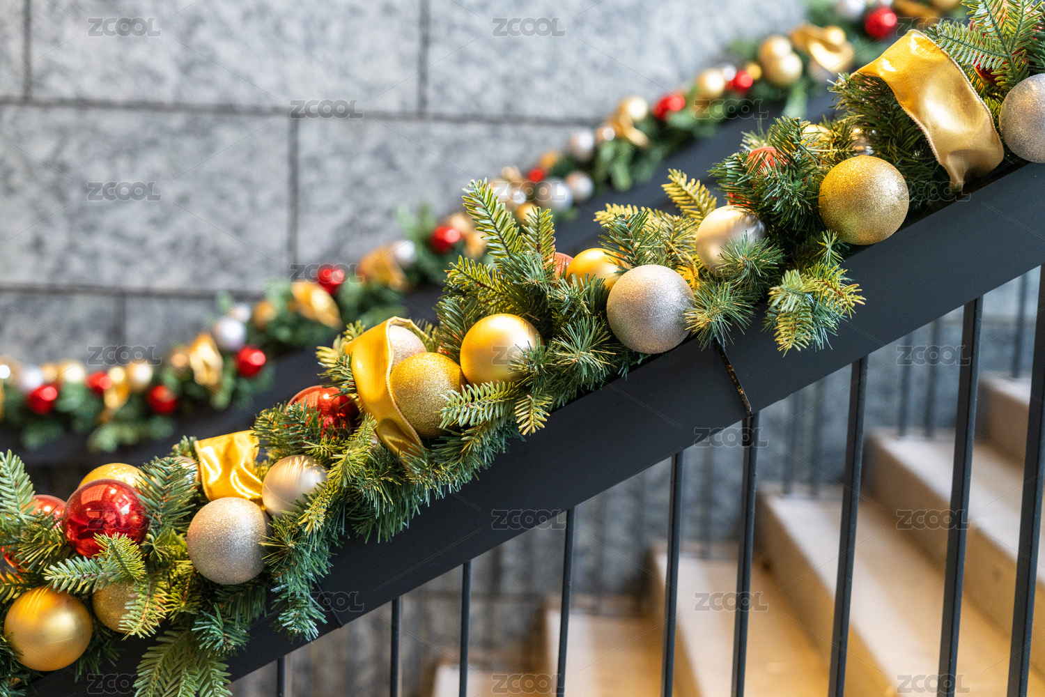 樓梯扶手上的圣誕節(jié)裝飾