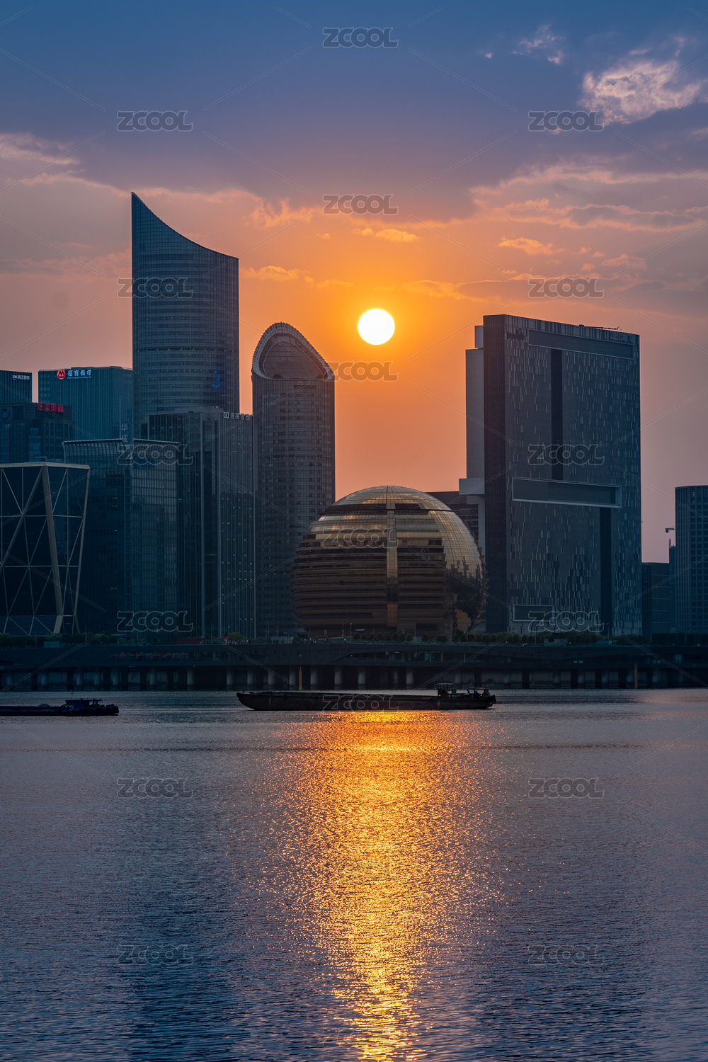 夕陽下的杭州錢塘江大金球