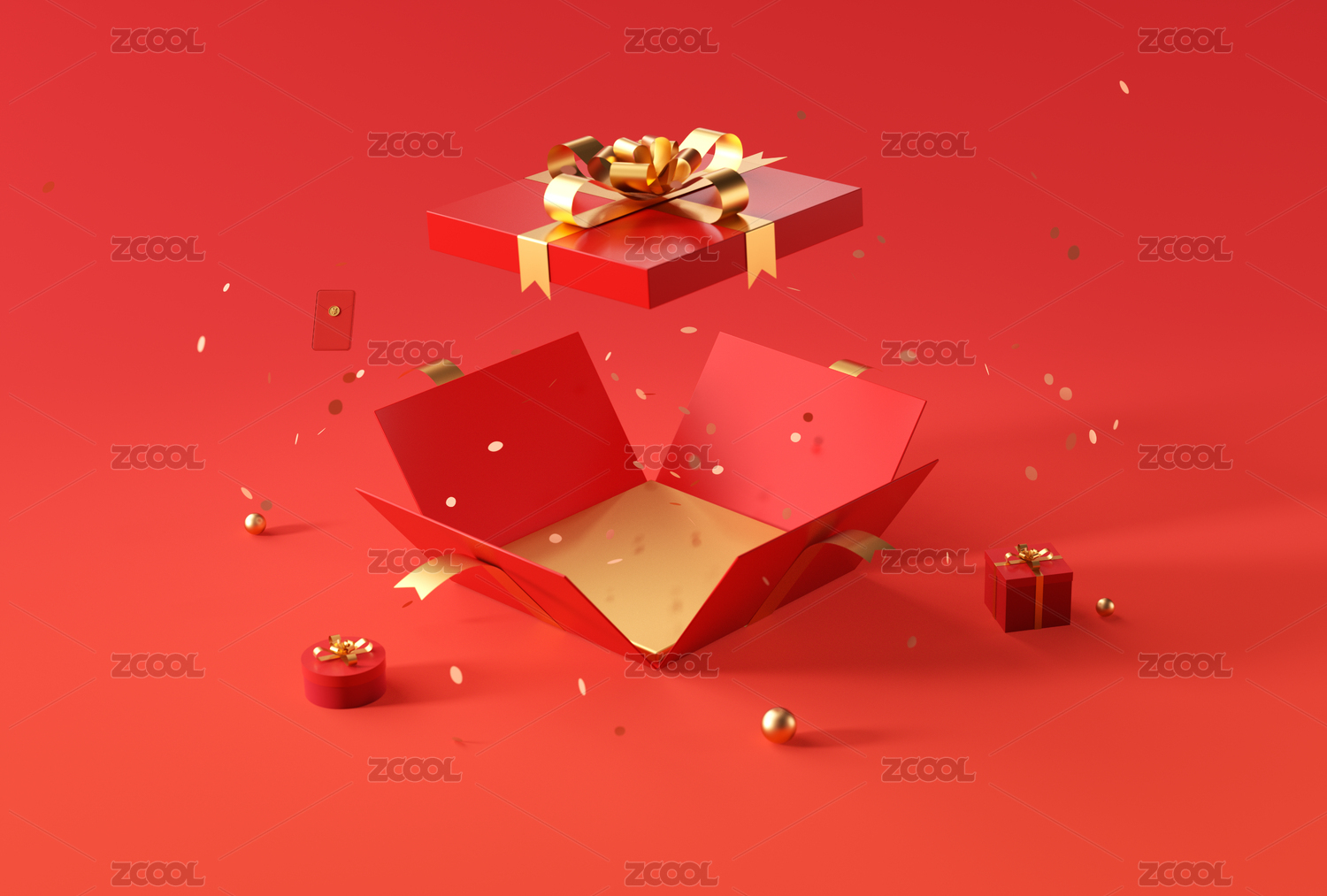 紅色背景上放著打開的紅禮盒-3D渲染
