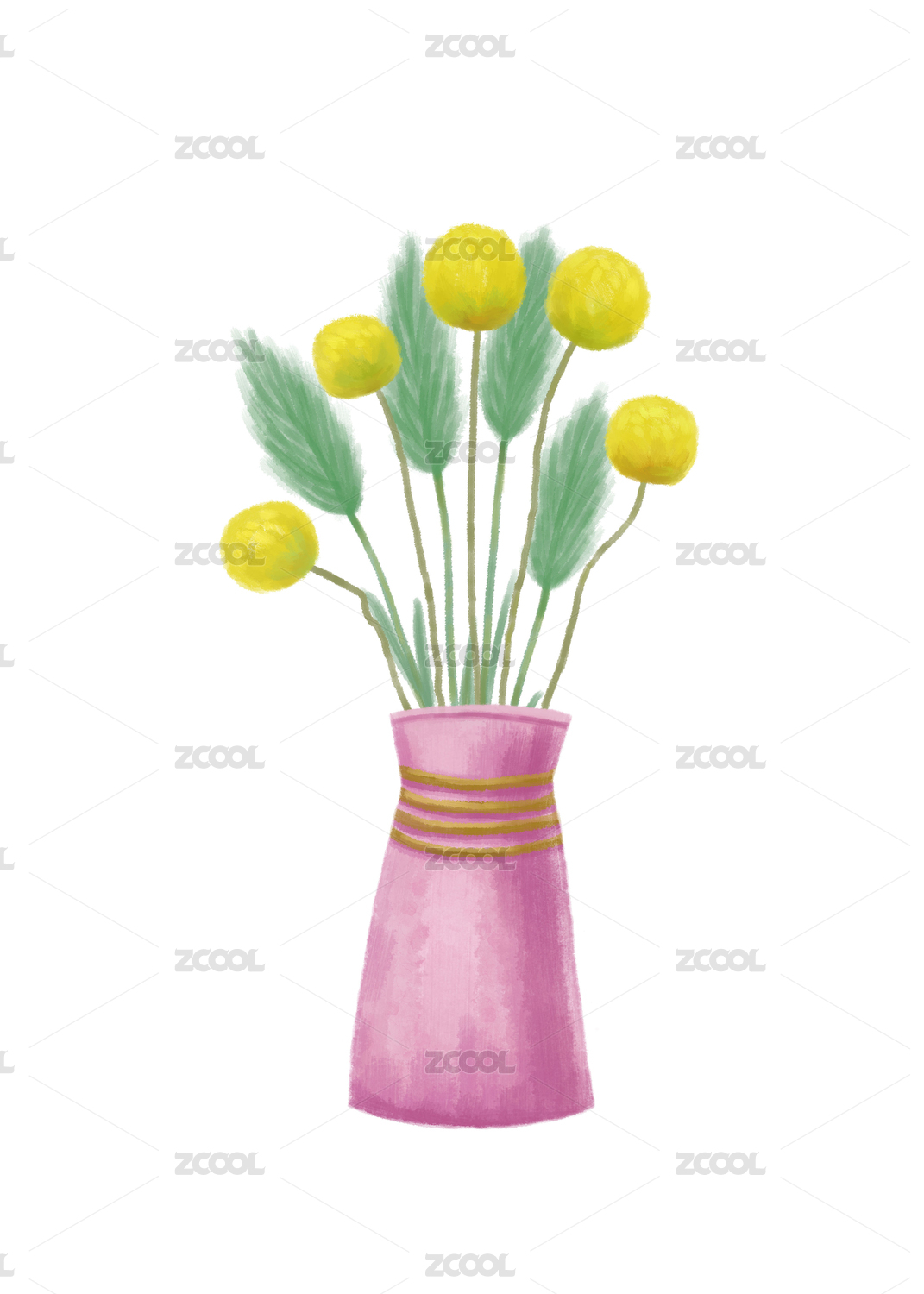 手繪黃金球綠草花束花藝插畫