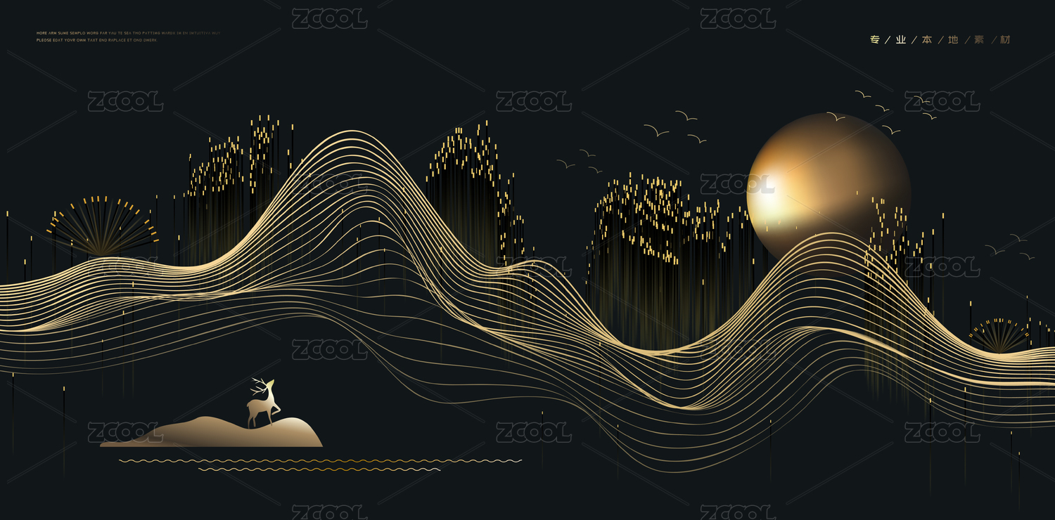 矢量新中式風(fēng)格抽象粒子線條山水風(fēng)景畫