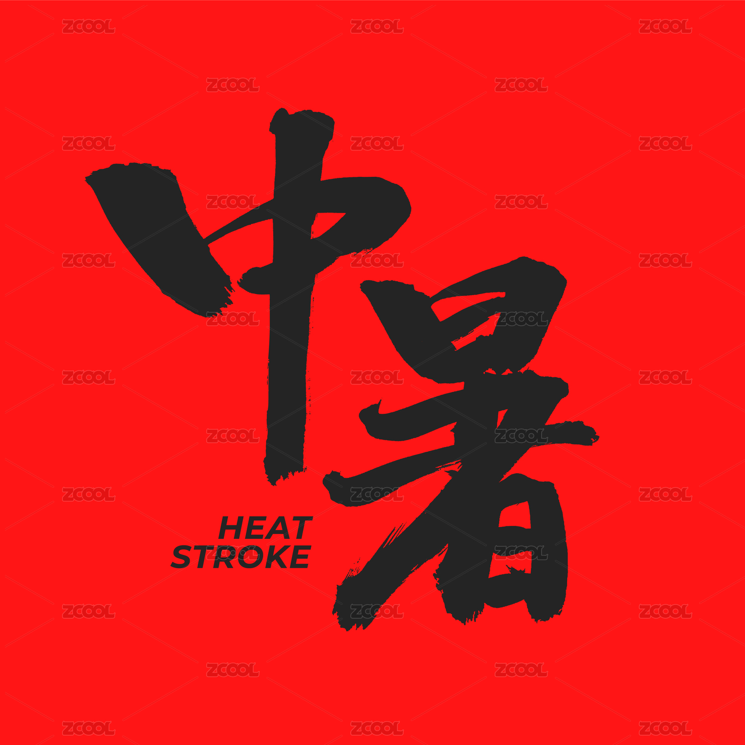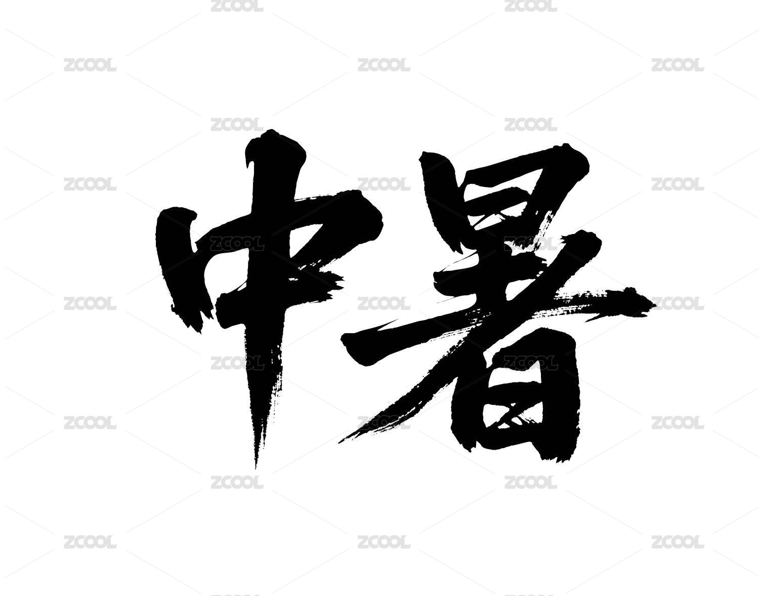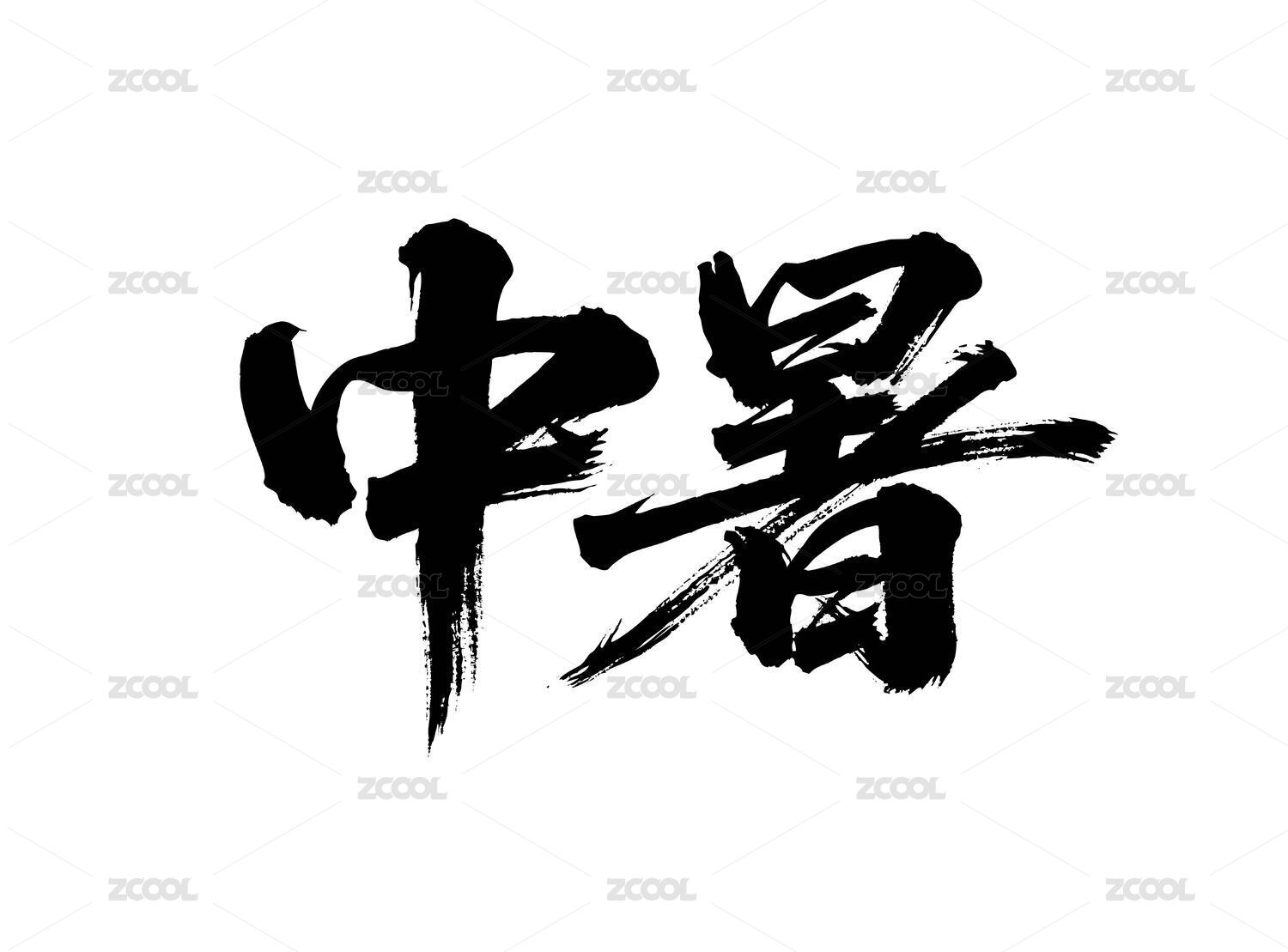 中暑矢量書法手寫毛筆字