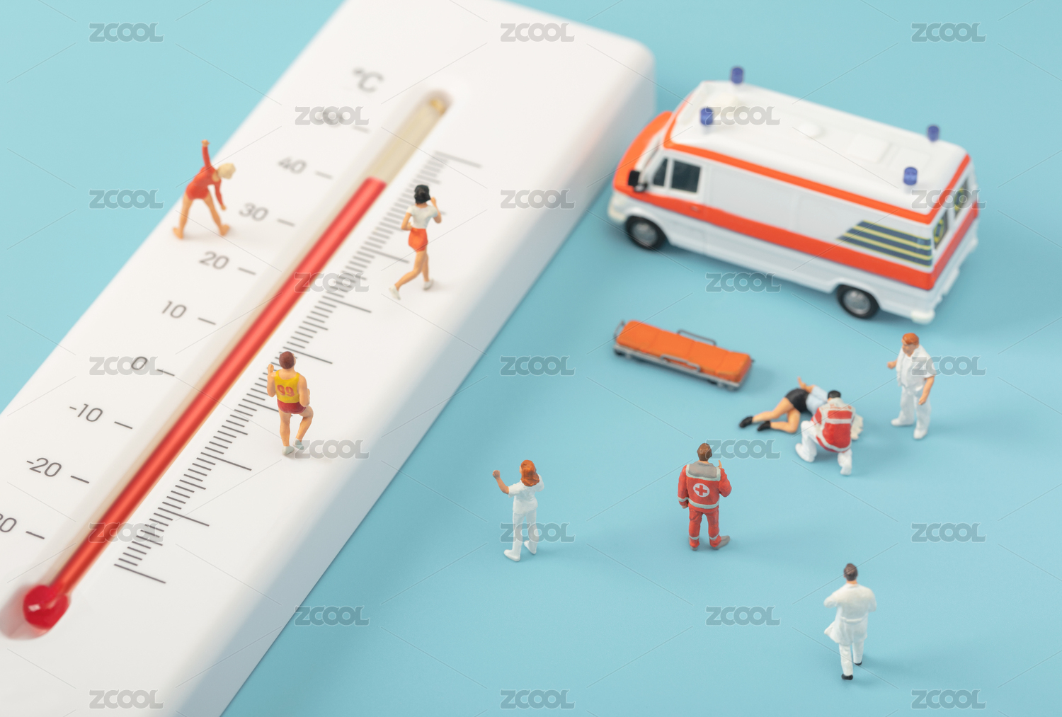 微縮創(chuàng)意夏季高溫室外運(yùn)動中暑暈倒的人