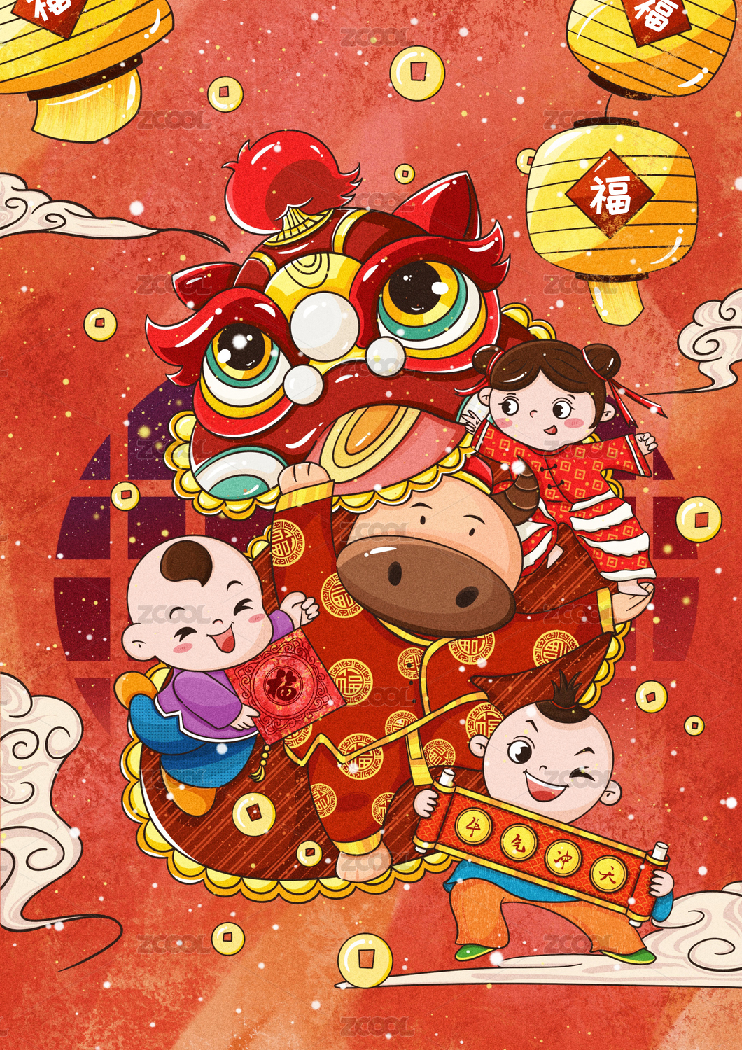 2020鼠年插畫老鼠舞獅鼠氣洋洋
