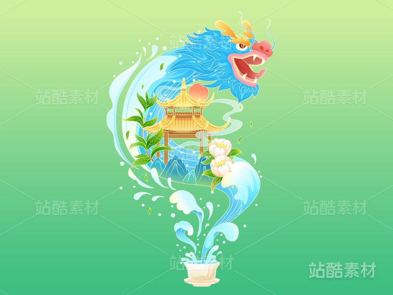 龍井茶國風(fēng)矢量茶葉插畫包裝