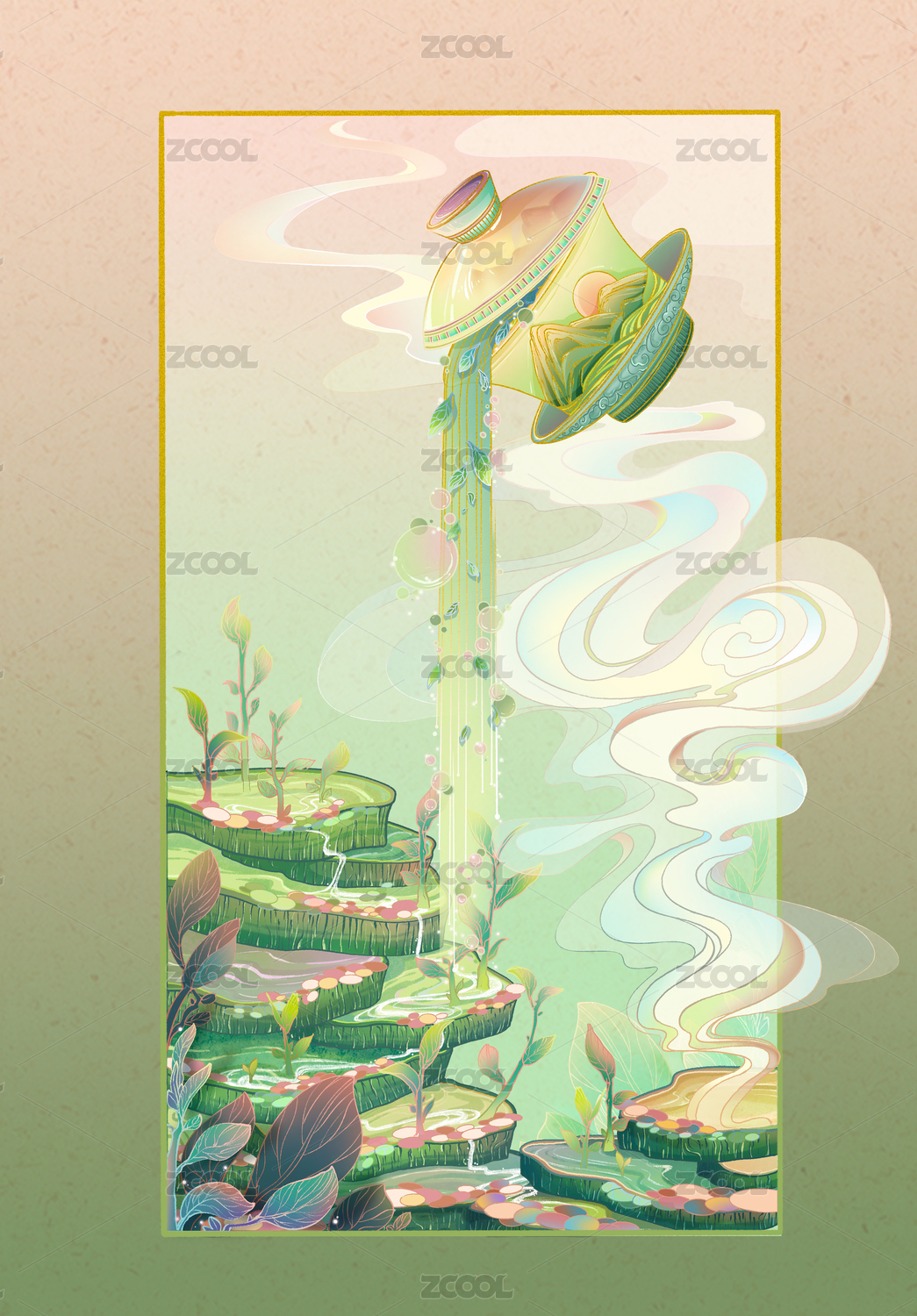 綠茶國風(fēng)包裝創(chuàng)意插畫