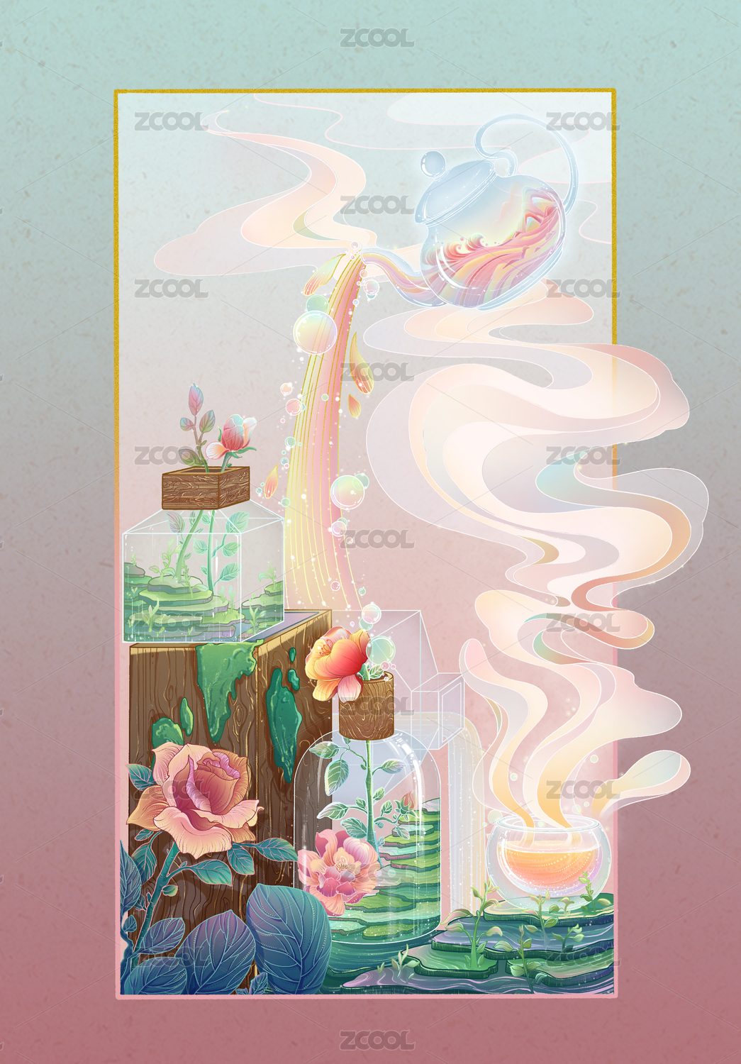 玫瑰花茶國風(fēng)包裝創(chuàng)意插畫