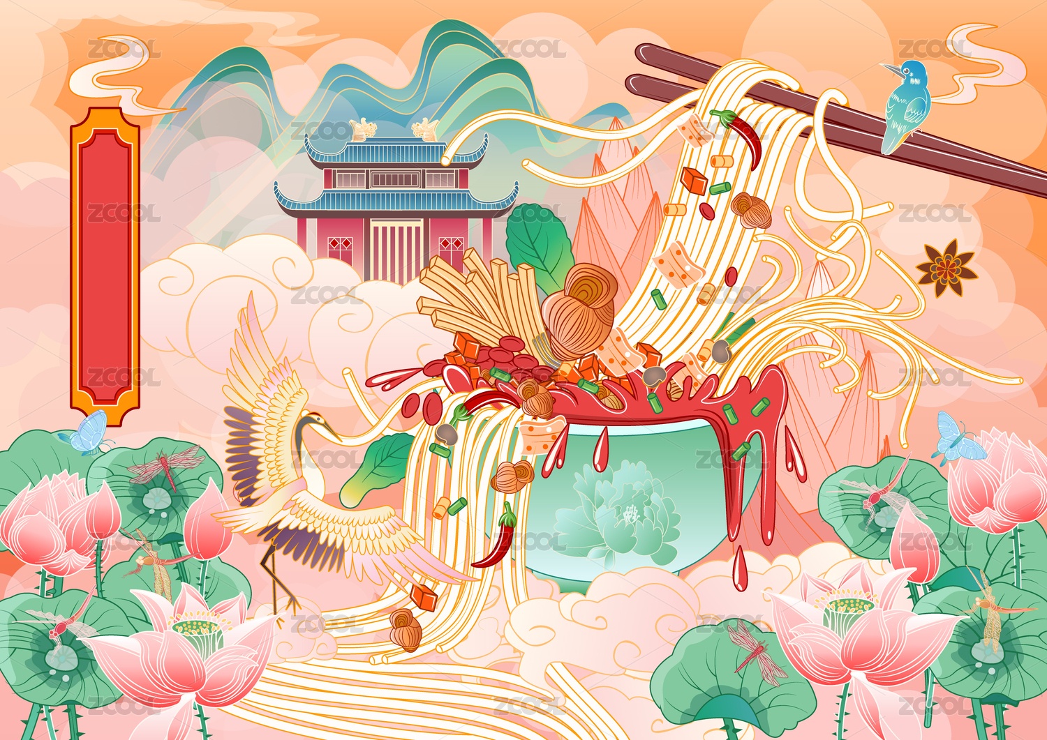 古風(fēng)國風(fēng)面條面食類包裝矢量插畫