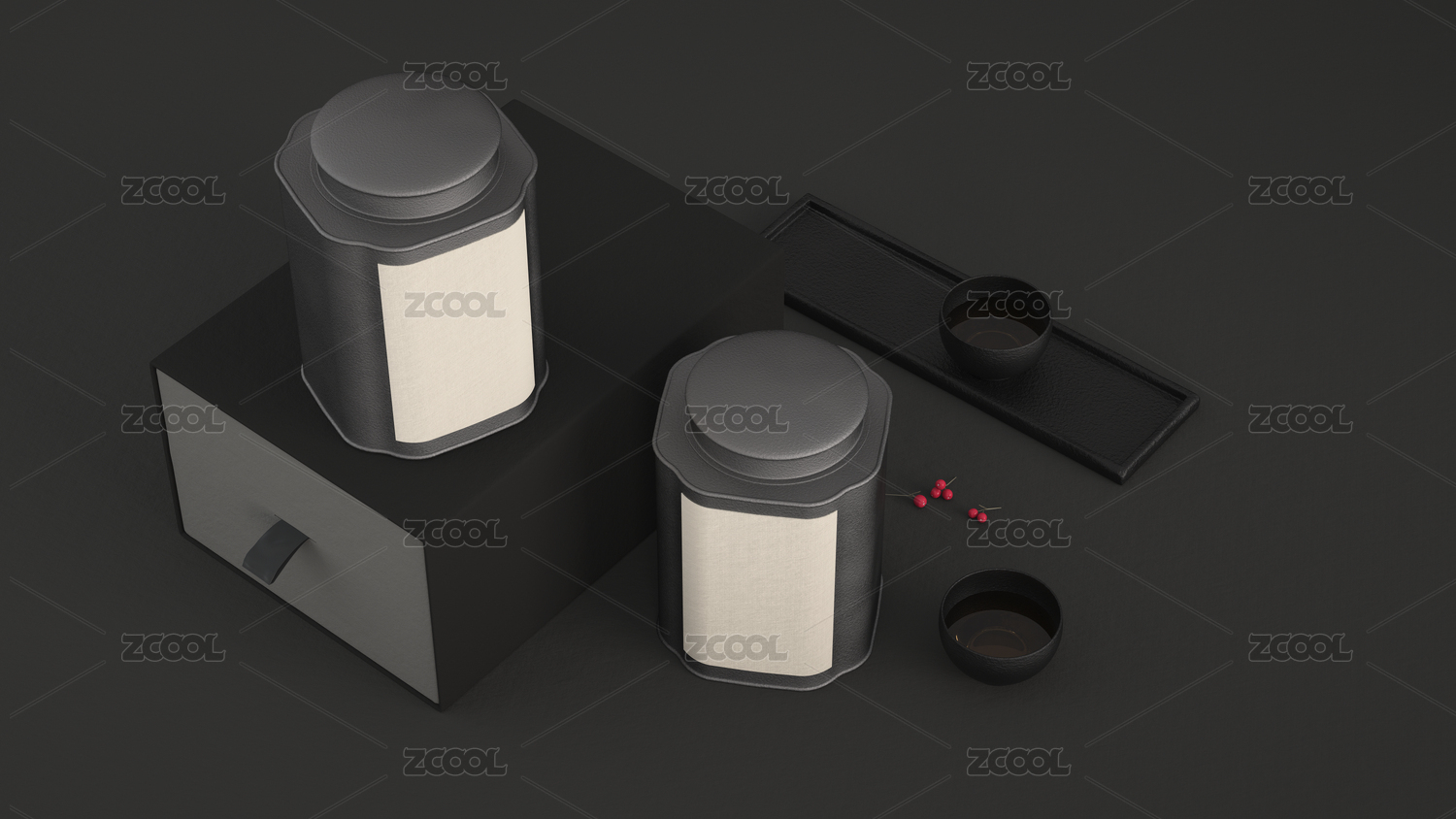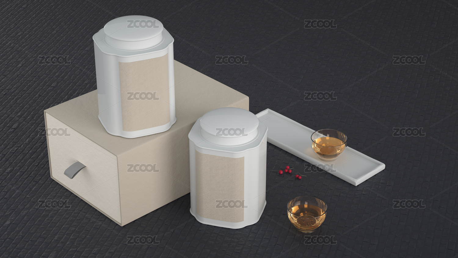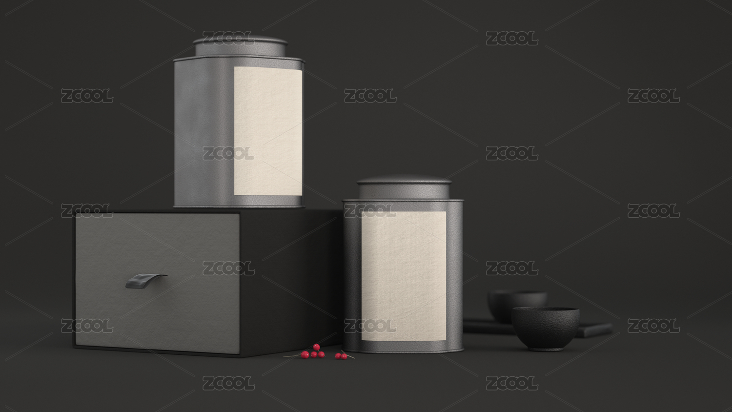 中國風(fēng)題材的茶葉罐、包裝和茶杯茶盞,3d渲染
