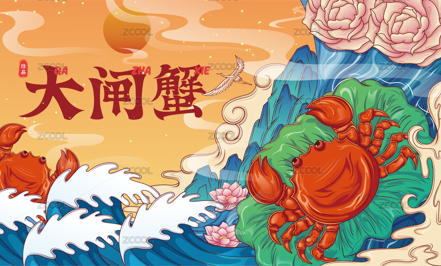 中國風(fēng)大閘蟹包裝插畫設(shè)計(jì)