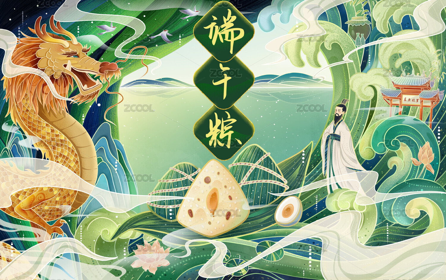 國風(fēng)版畫國潮端午節(jié)節(jié)日包裝插畫