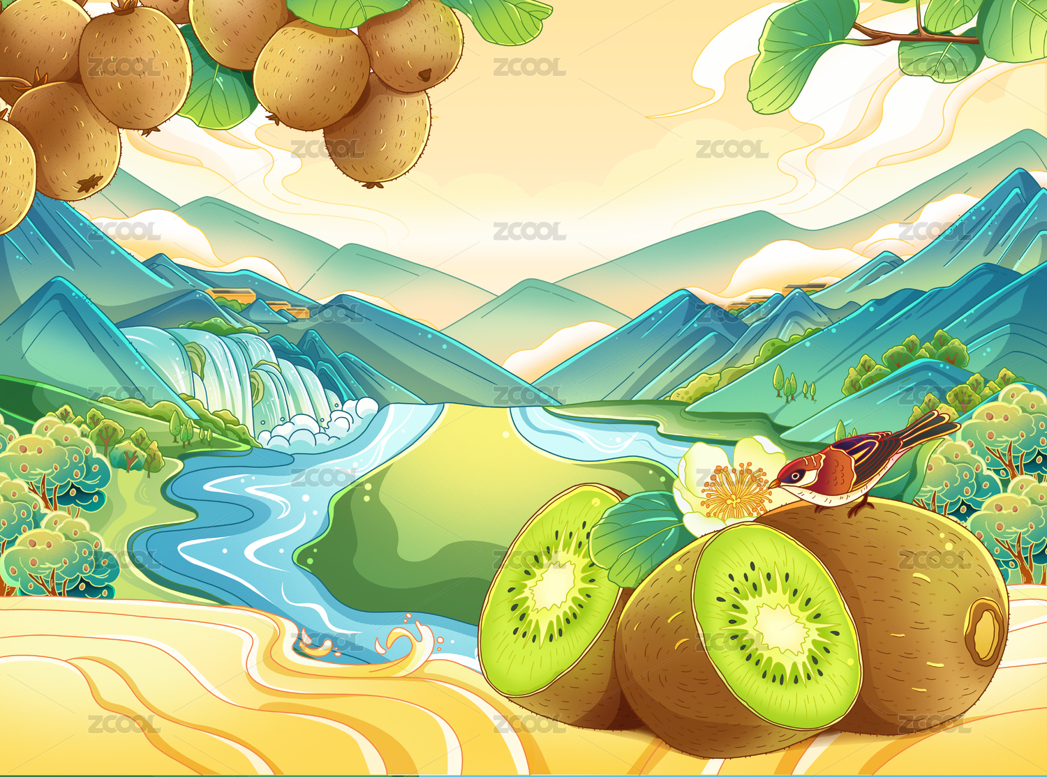 手繪國風(fēng)獼猴桃水果包裝插畫