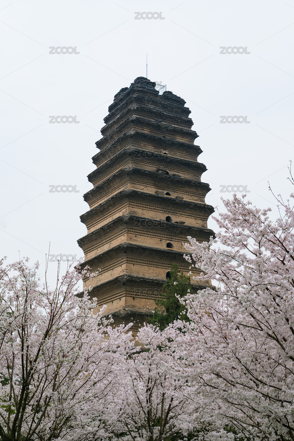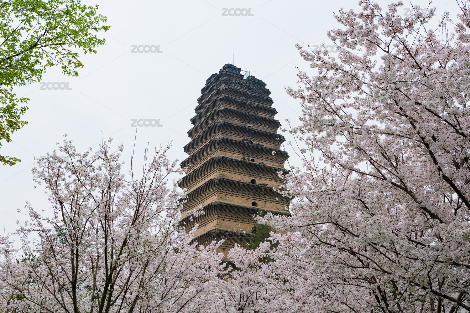 西安博物院小雁塔春天櫻花盛開(kāi)的風(fēng)景