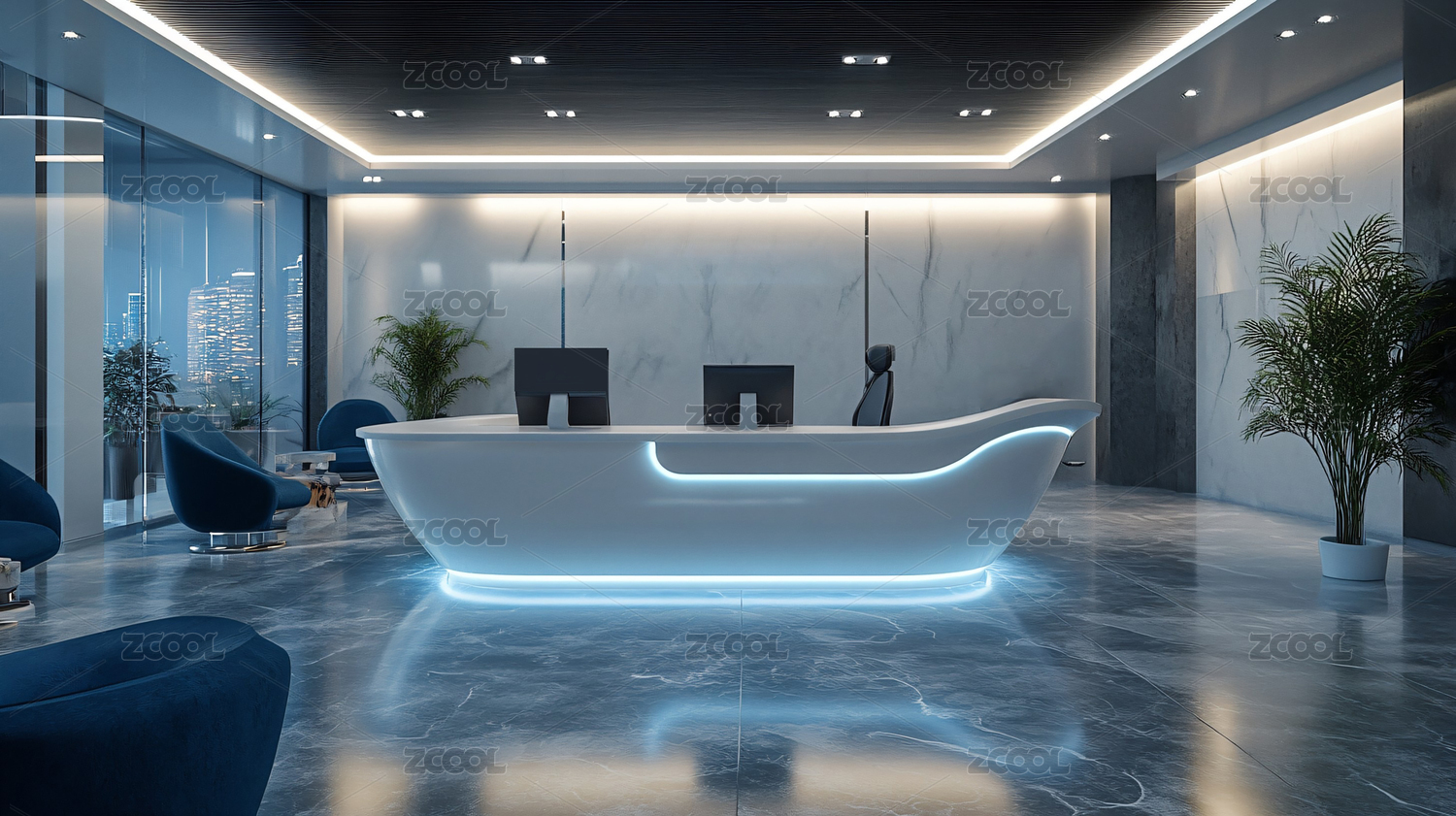 現(xiàn)代商務(wù)辦公前臺與城市景觀