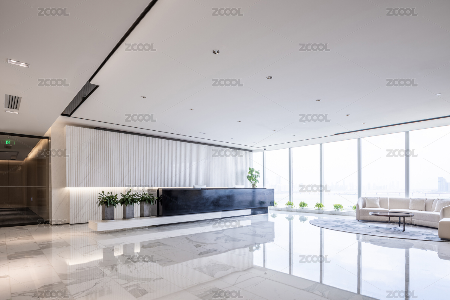 設(shè)計(jì)高端簡約的辦公室環(huán)境,大堂前臺休息區(qū)域