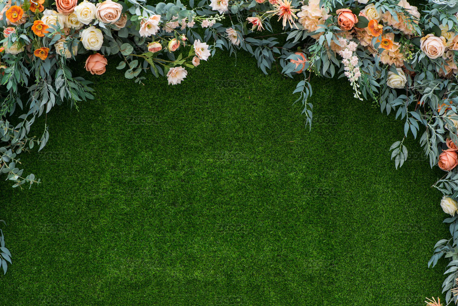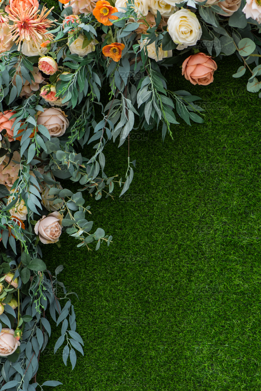 多種顏色的仿真花環(huán)和草坪