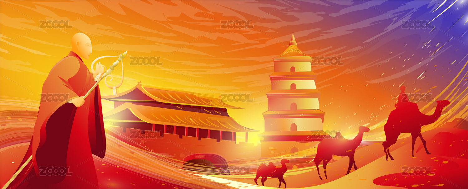 唐朝玄奘駱駝商隊(duì)在從長(zhǎng)安去往絲綢之路一帶