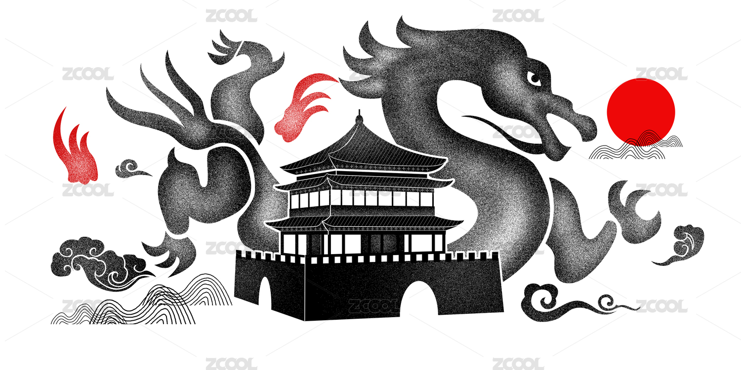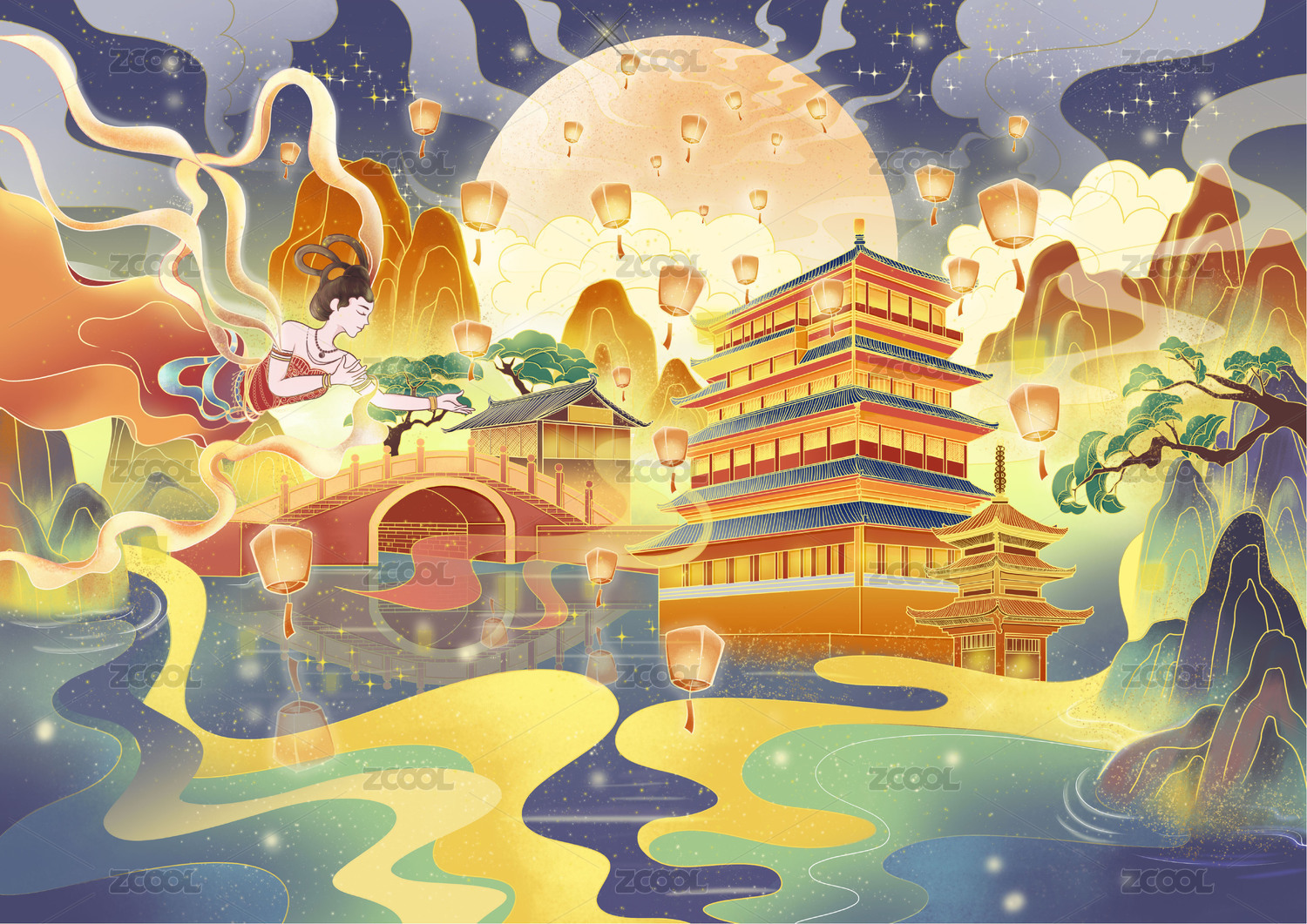 西安長(zhǎng)安城旅游景點(diǎn)全景圖插畫