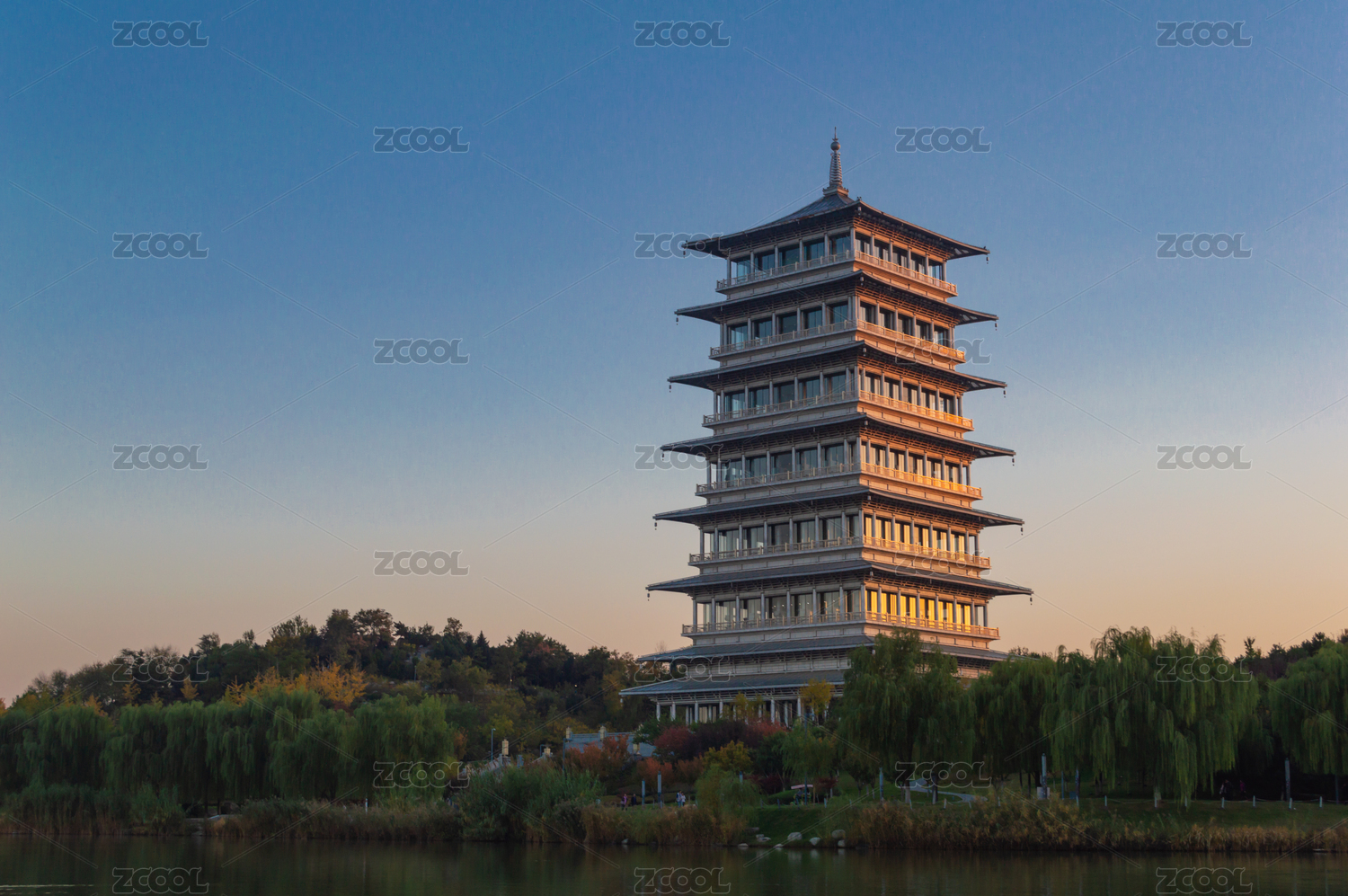 西安世博園長(zhǎng)安塔古建筑全景圖
