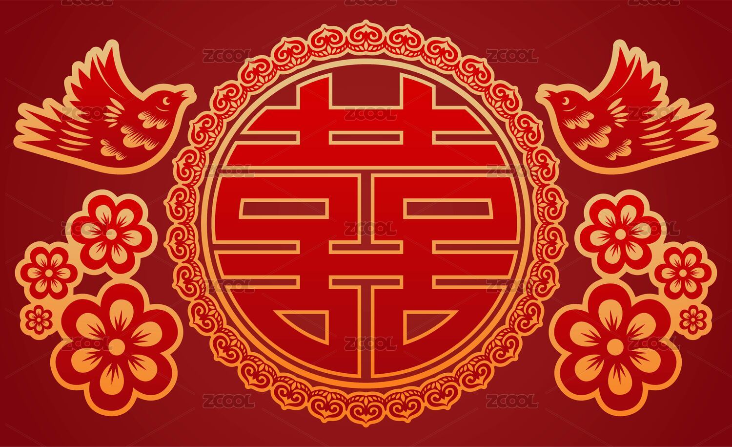 紅金囍字傳統(tǒng)插畫(huà)