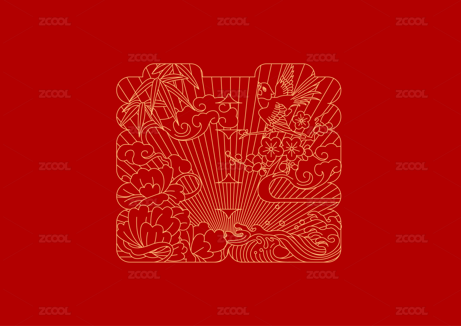 雙喜蝴蝶錦鯉蓮花桃牡丹蝙蝠銅錢(qián)吉祥如意福國(guó)潮插畫(huà)