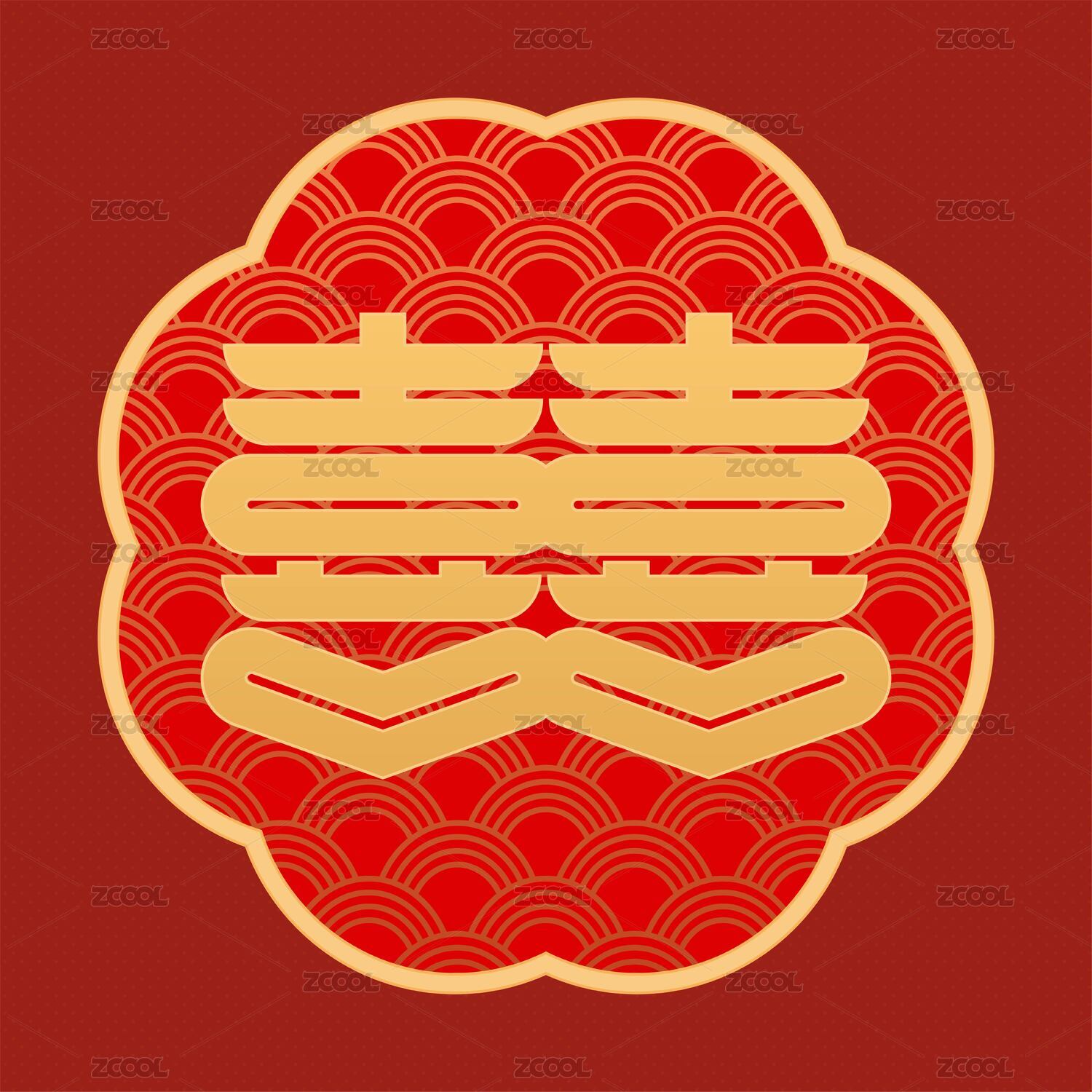 紅雙喜矢量線稿裝飾元素