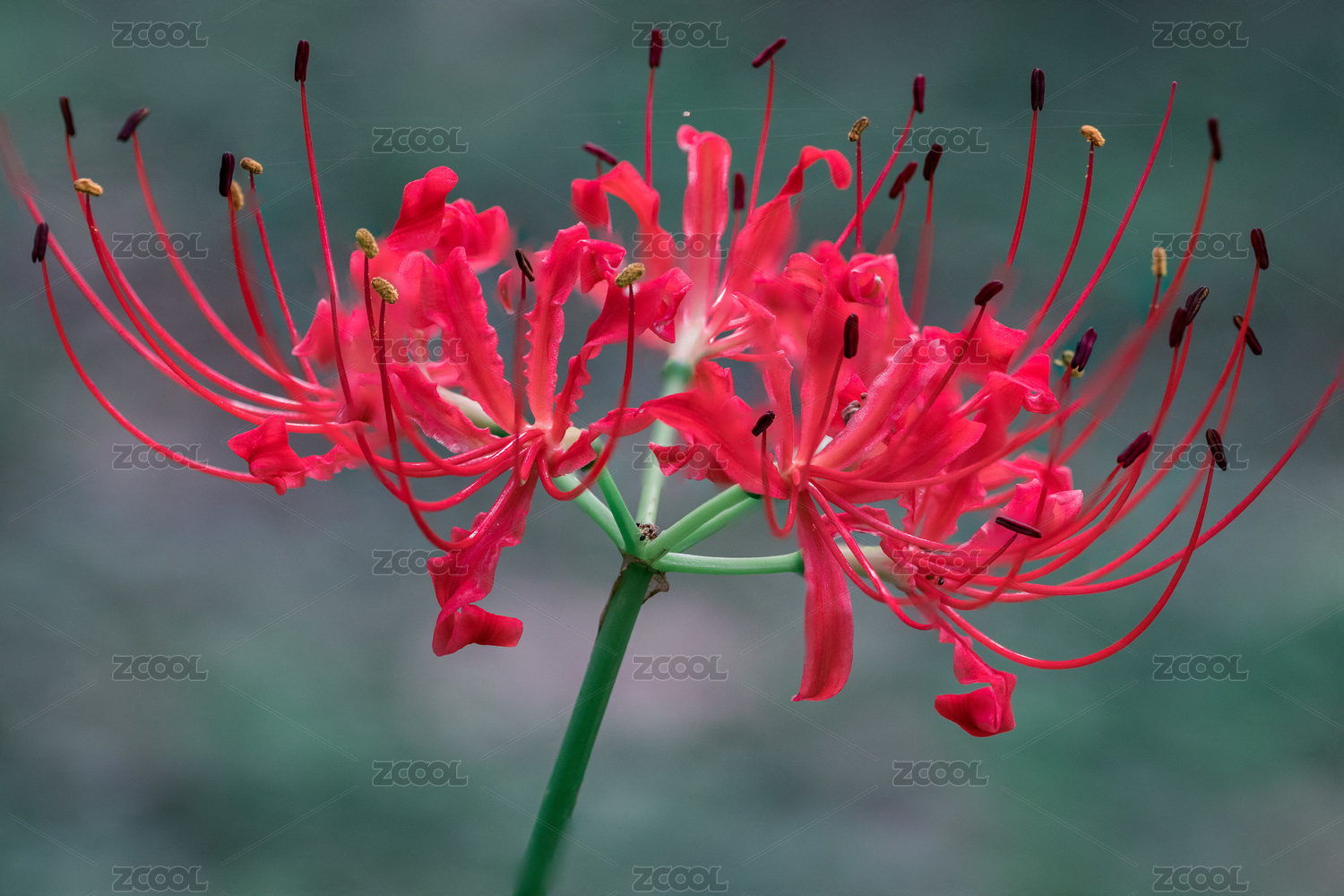 一株紅色曼珠沙華彼岸花花瓣花蕊特寫