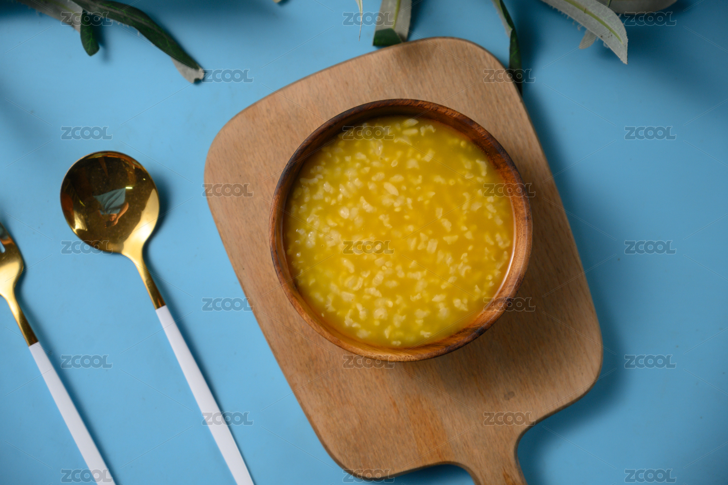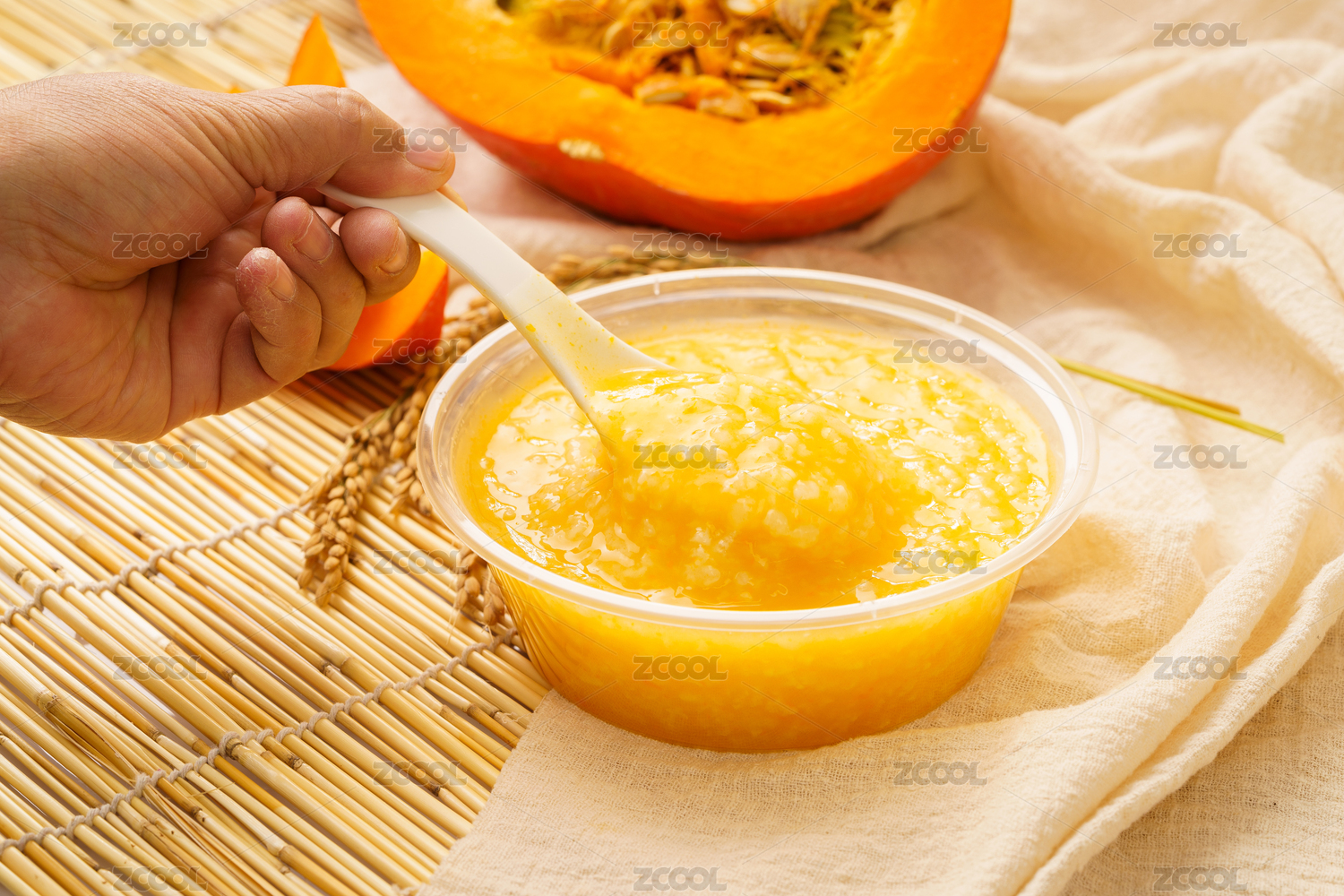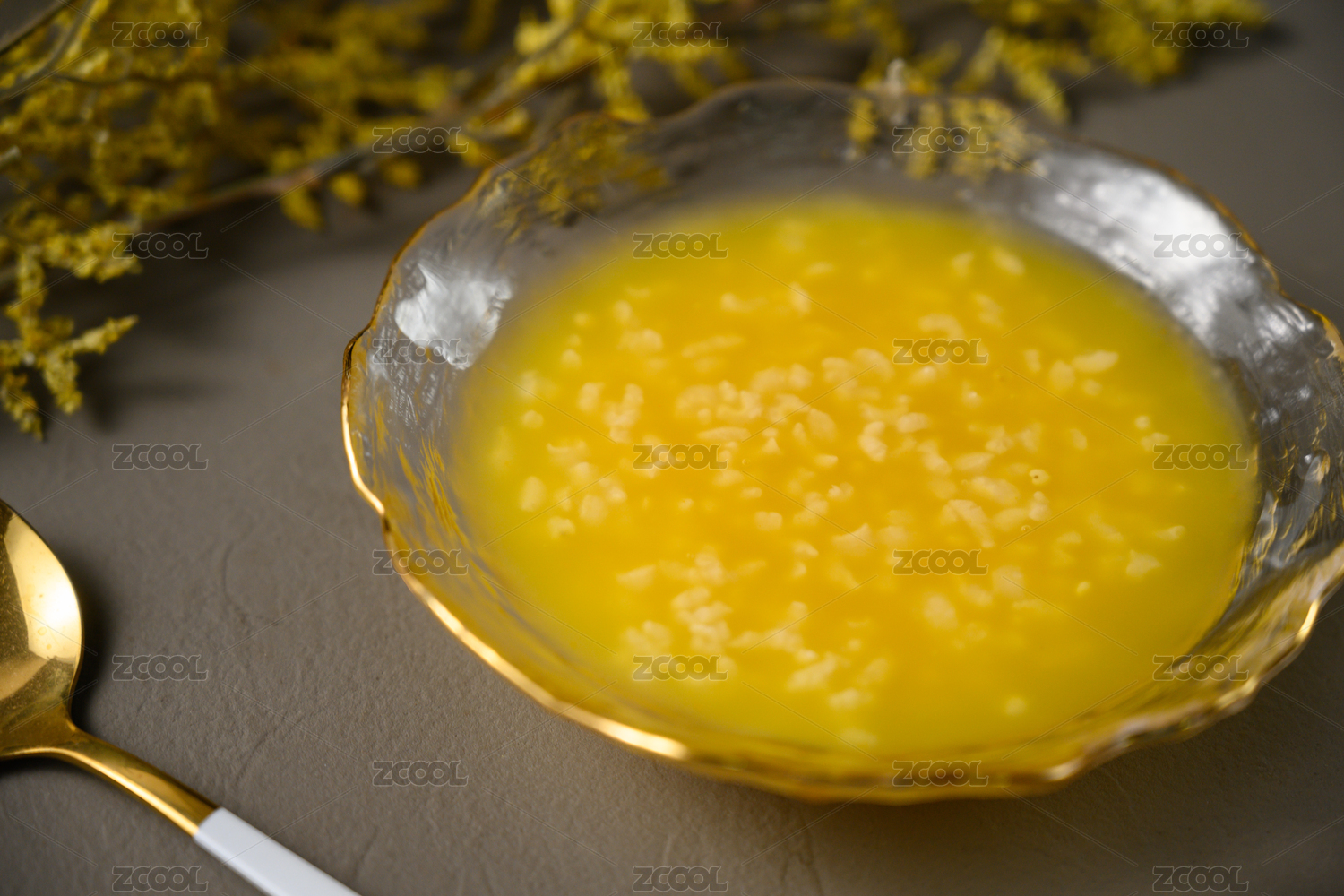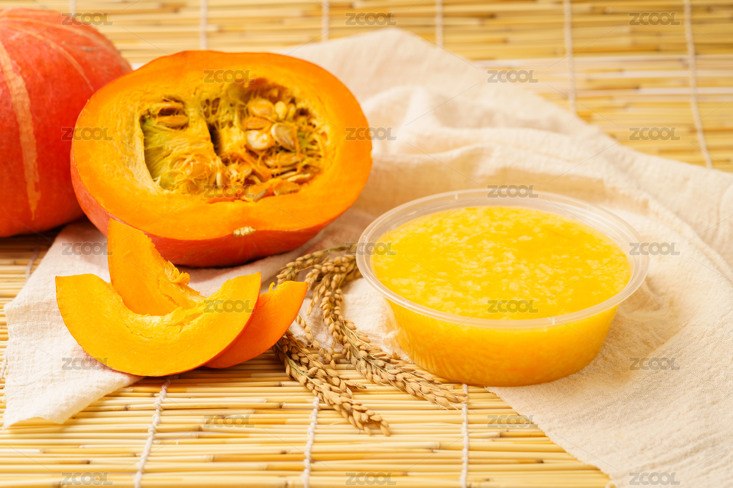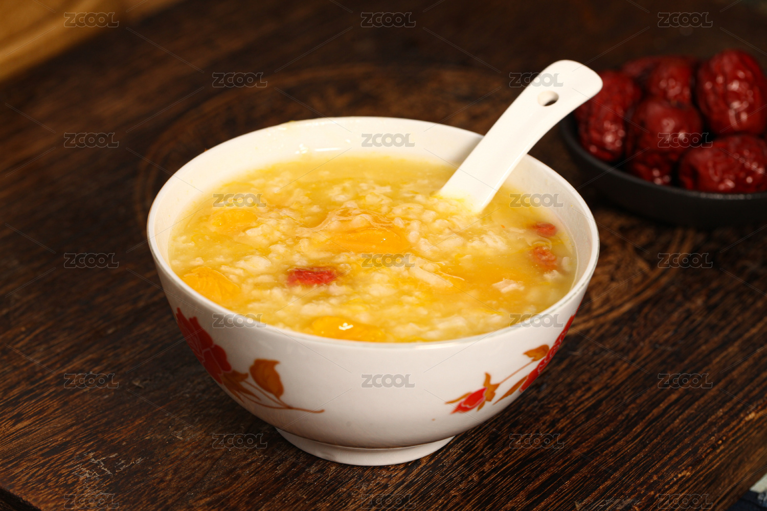 復(fù)古木桌上的一碗金黃色的南瓜粥