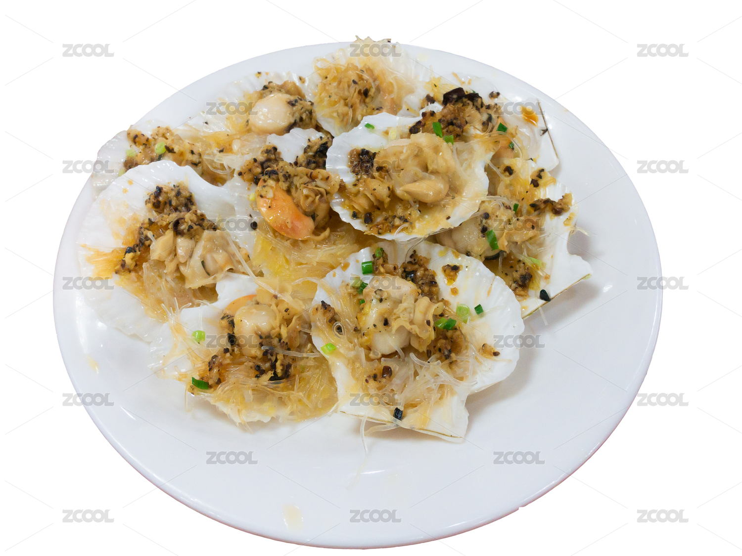 一盤中國傳統(tǒng)菜粉絲蒸扇貝