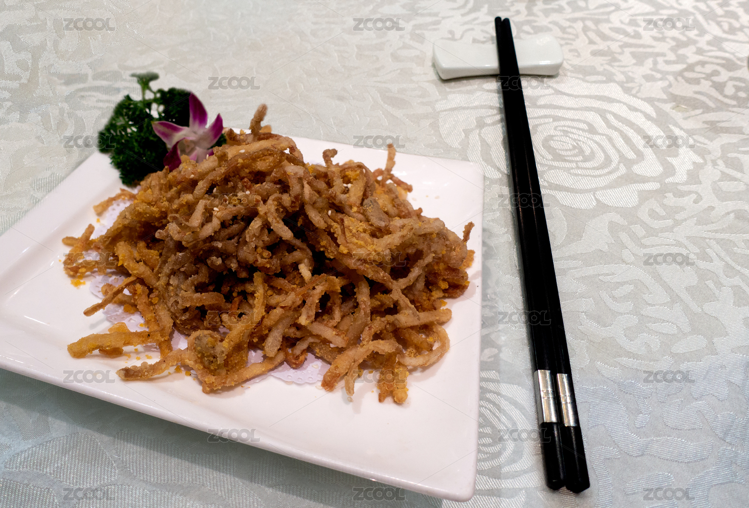 一盤中國傳統(tǒng)菜蛋黃茶樹菇