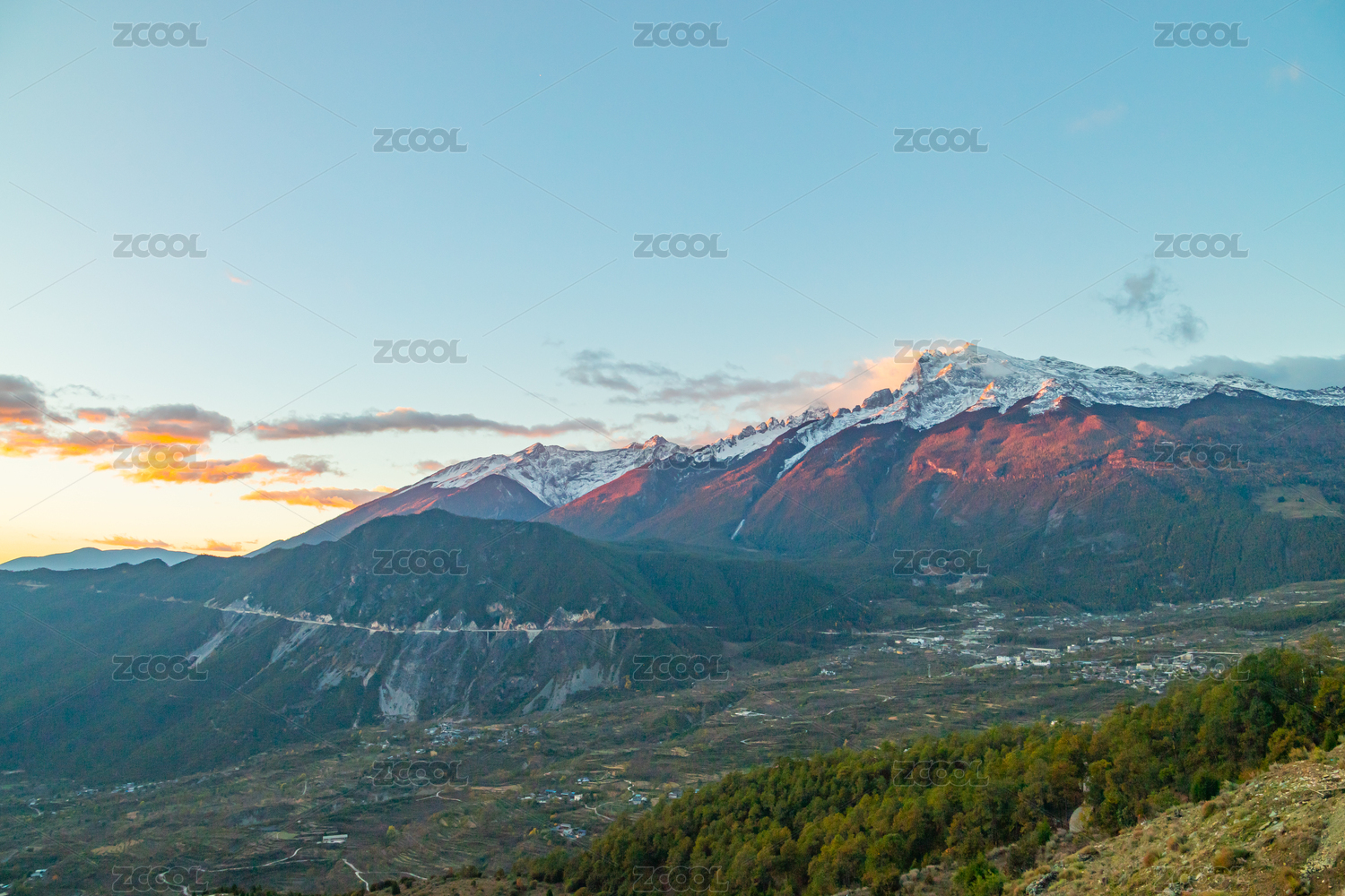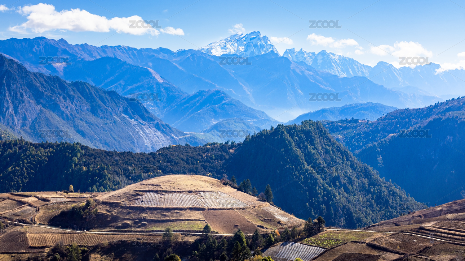 中國(guó)迪慶香格里拉市遠(yuǎn)眺哈巴雪山