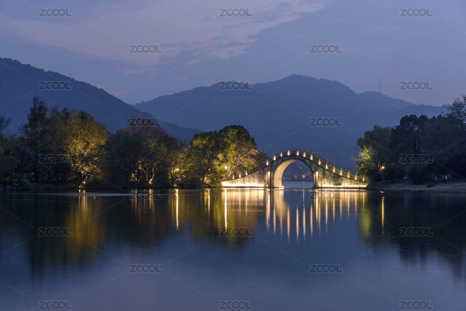 中國浙江省杭州市蕭山湘湖臥虹橋夜景風(fēng)光