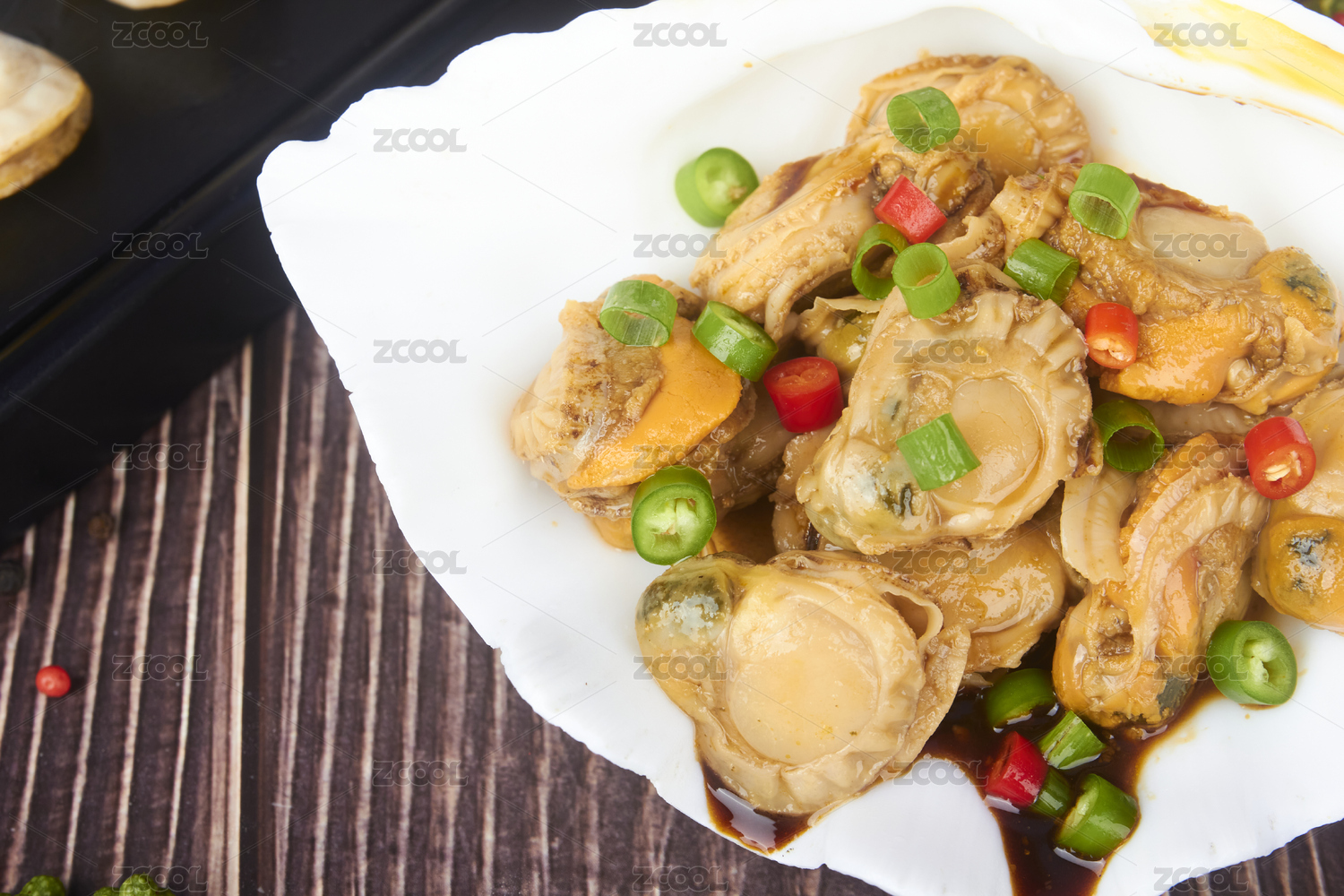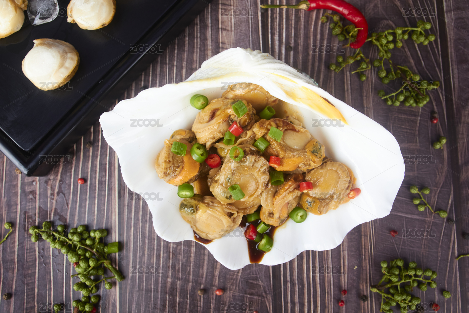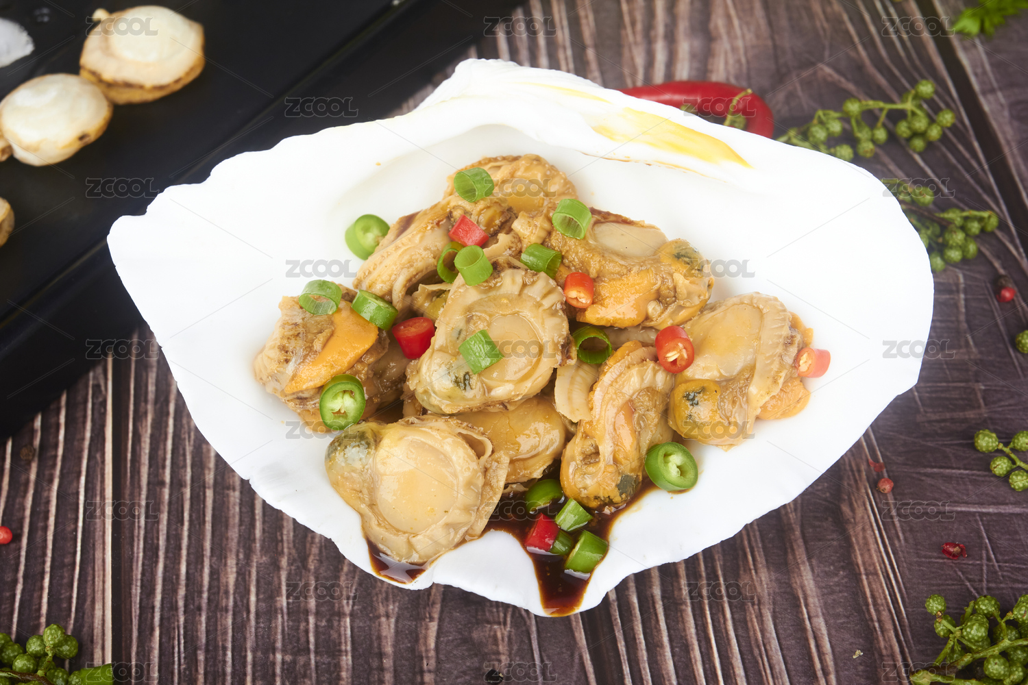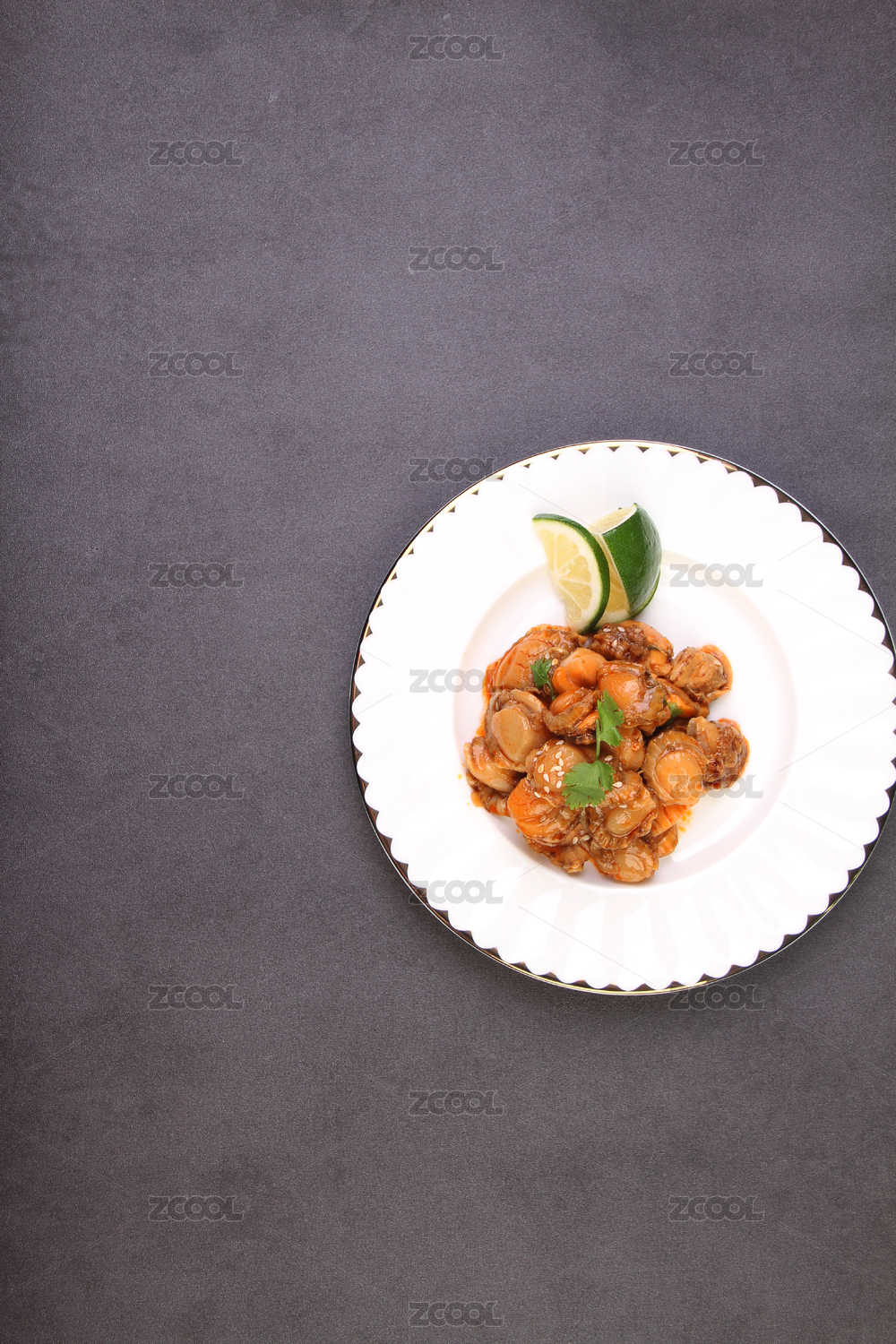 白盤里的麻辣扇貝肉