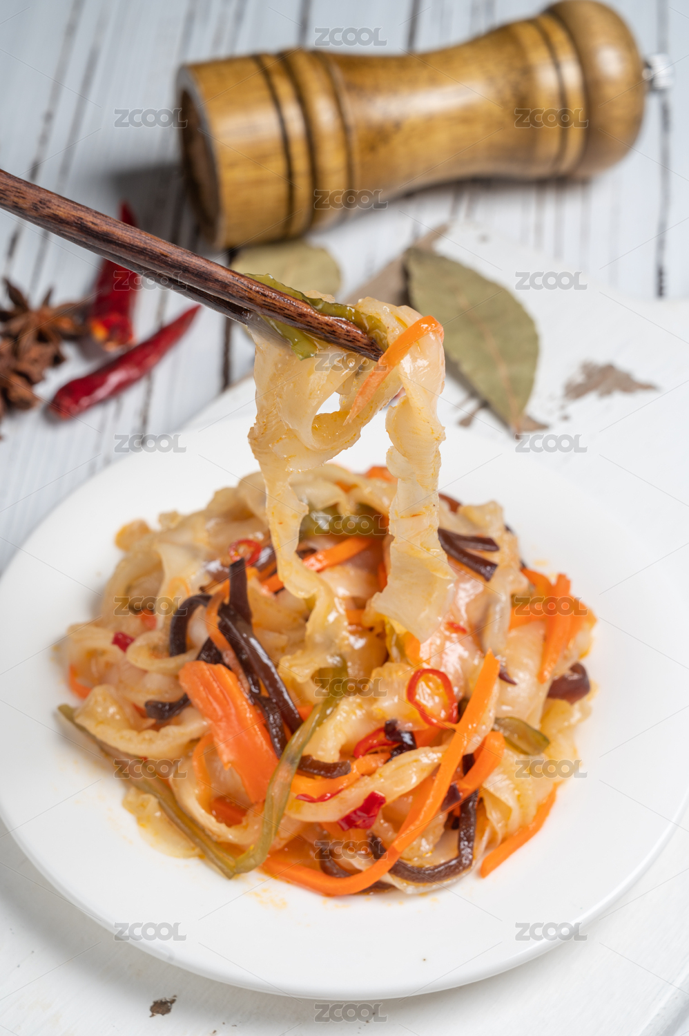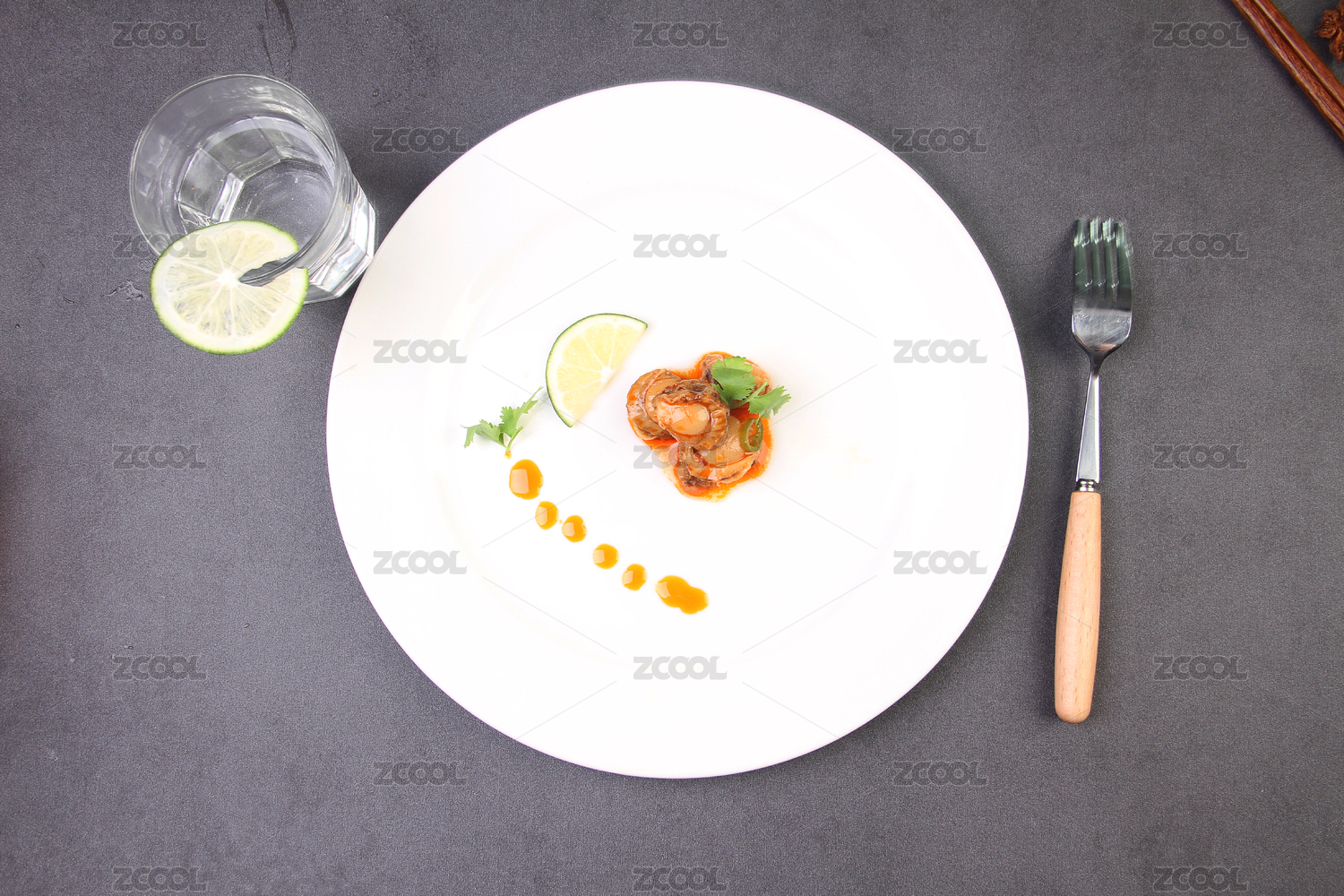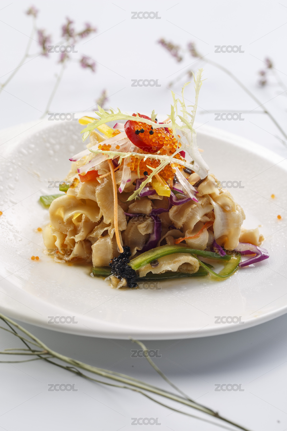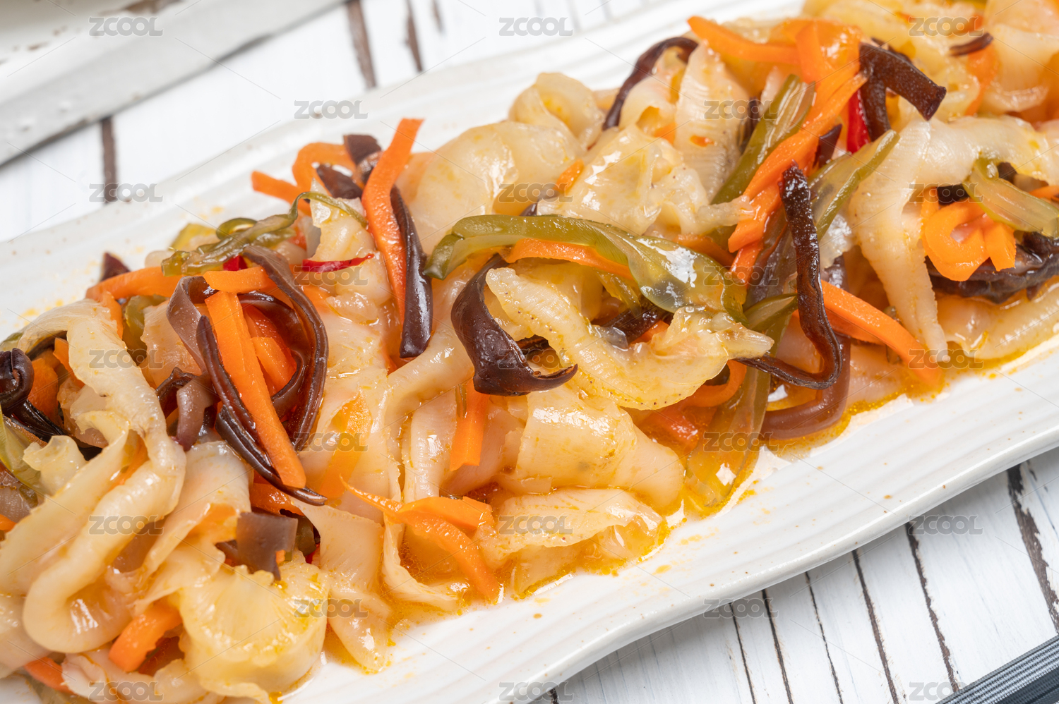 白盤里的麻辣扇貝肉