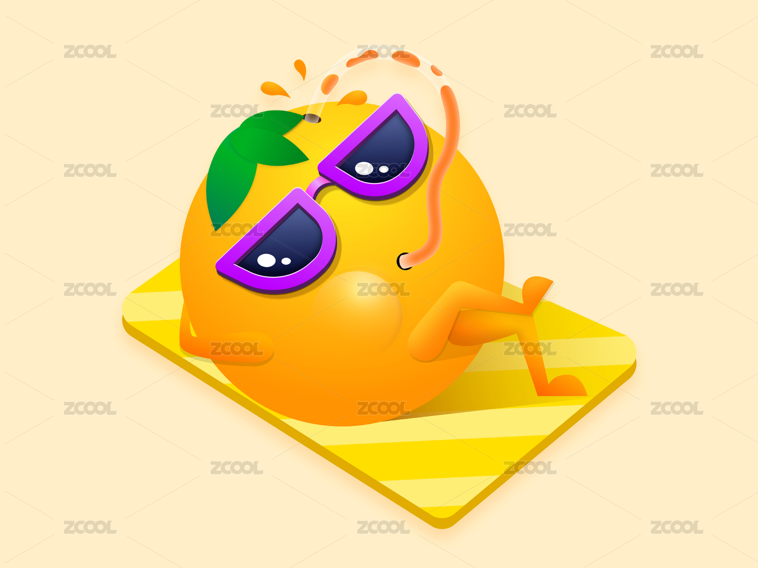 躺在墊子上喝橙汁戴著眼鏡的橘子