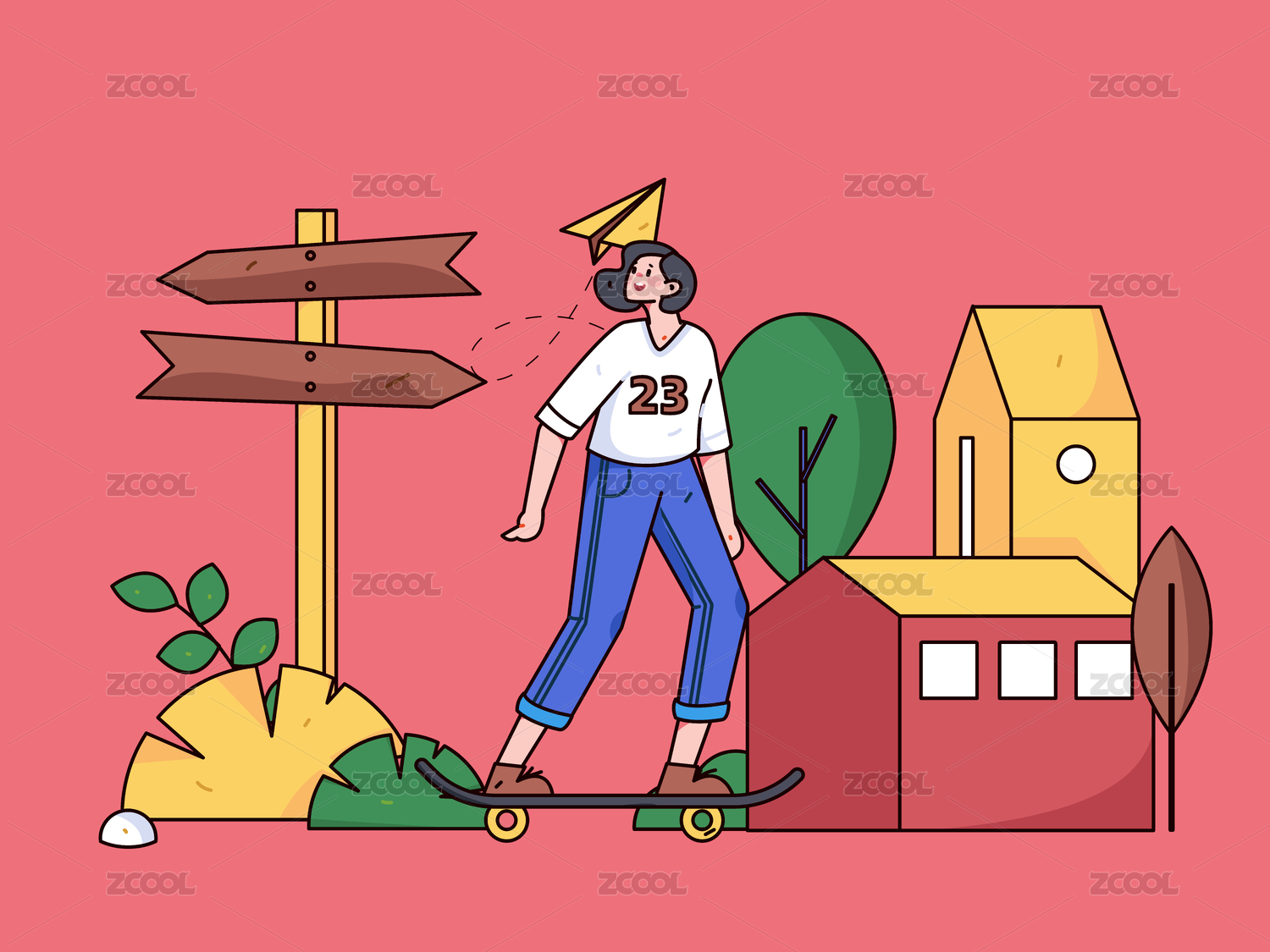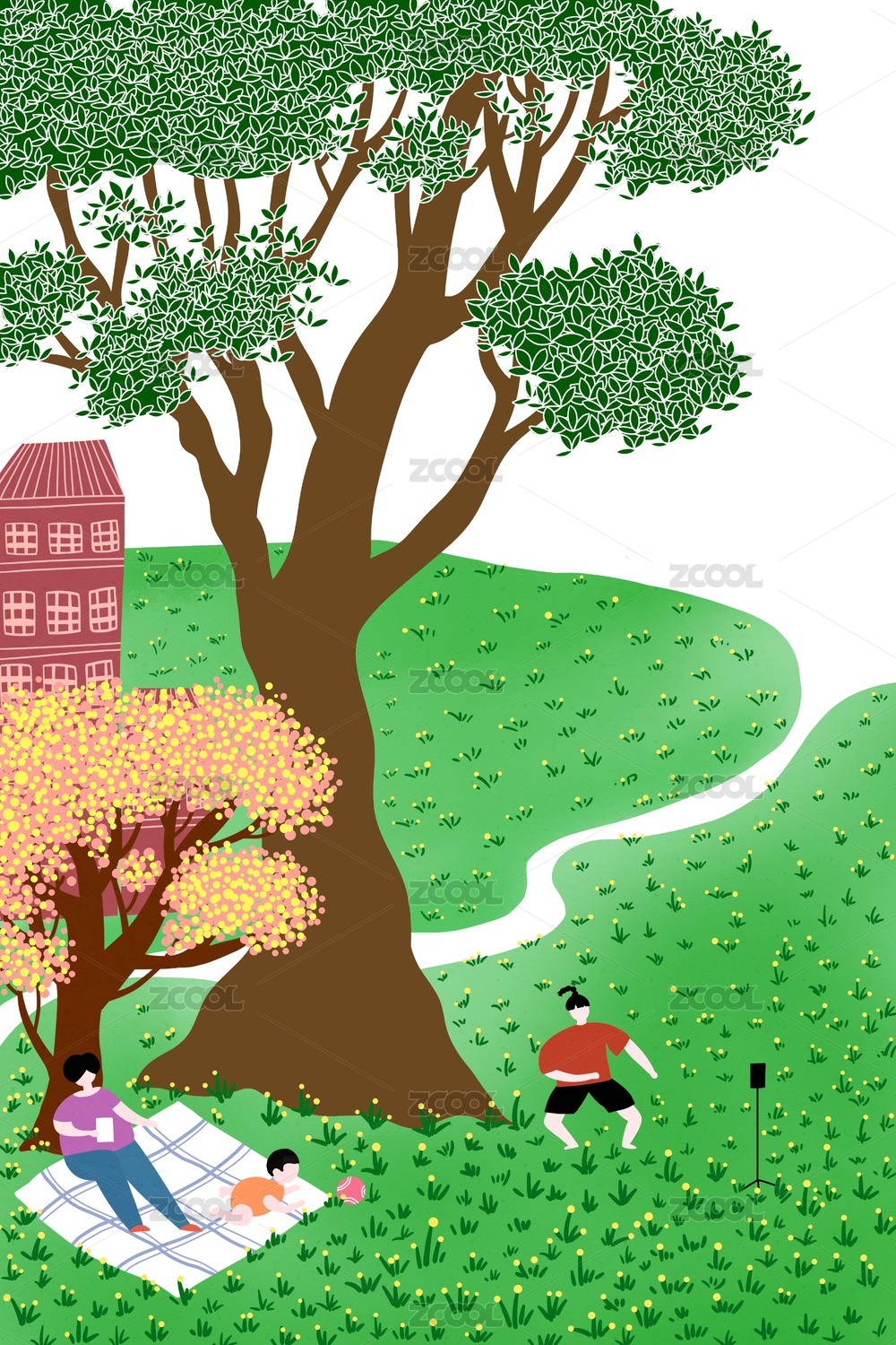 清新手繪插畫(huà)假日公園