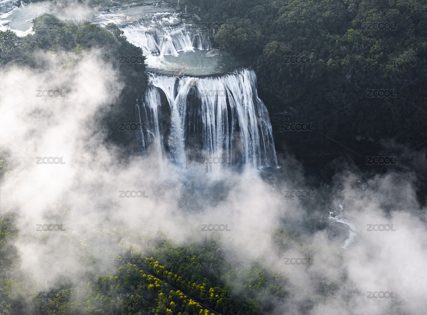 中國(guó)貴州安順黃果樹大瀑布高視角風(fēng)光
