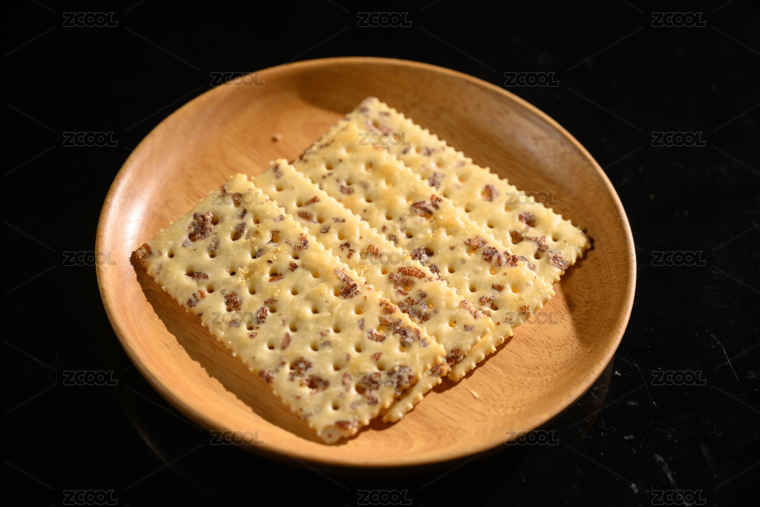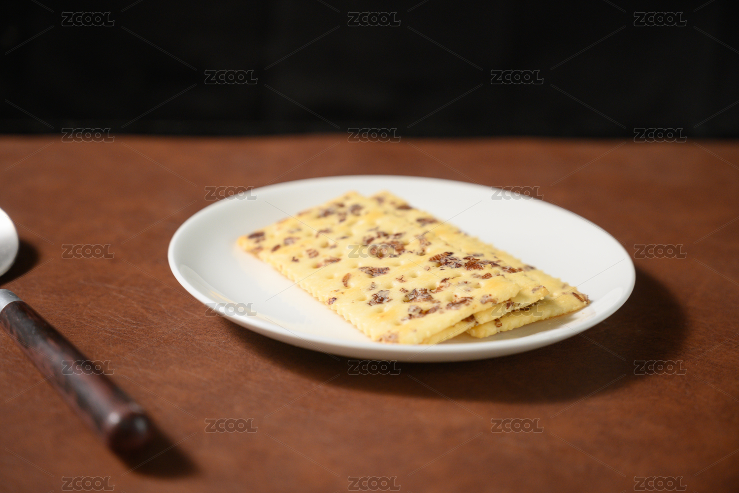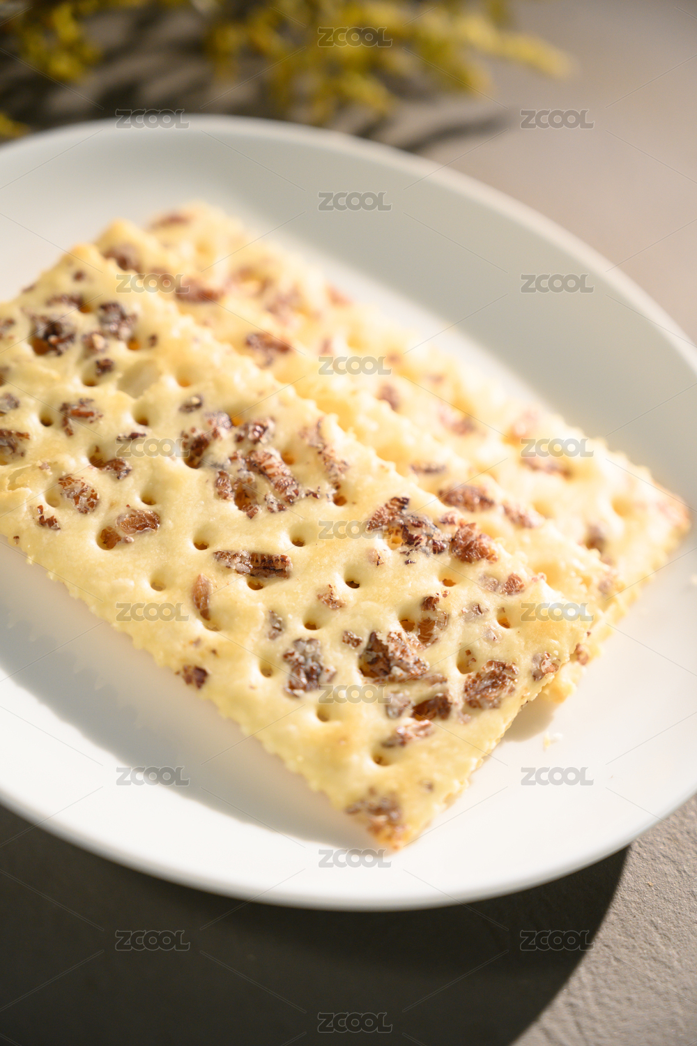 桌面上的盤子里的美味可口的黑麥蘇打餅