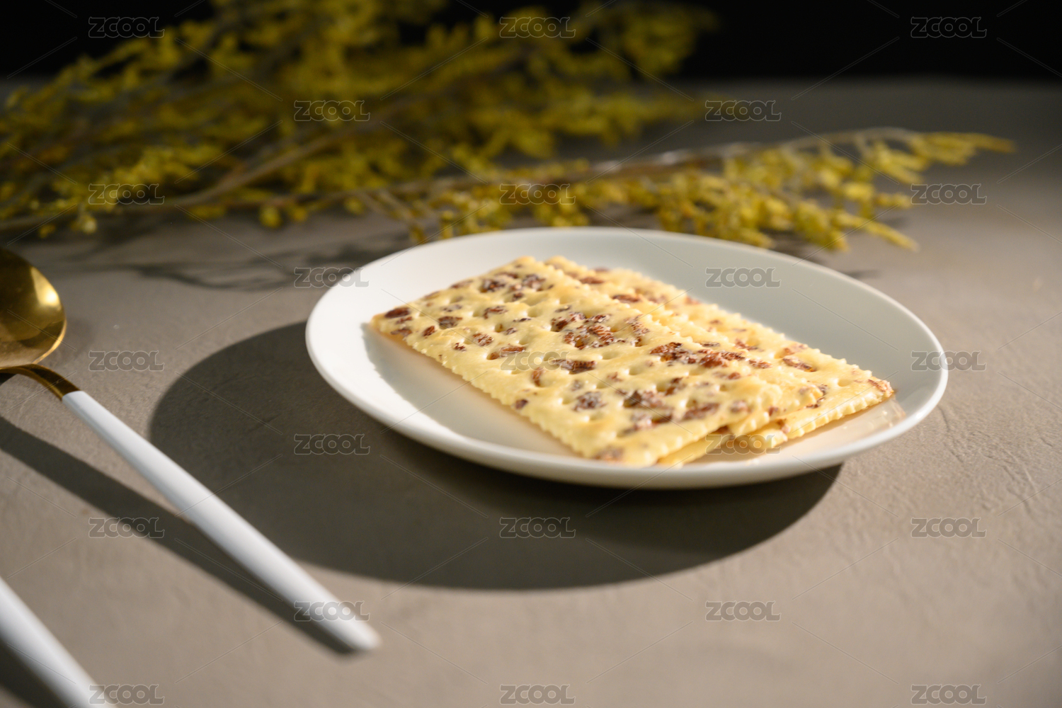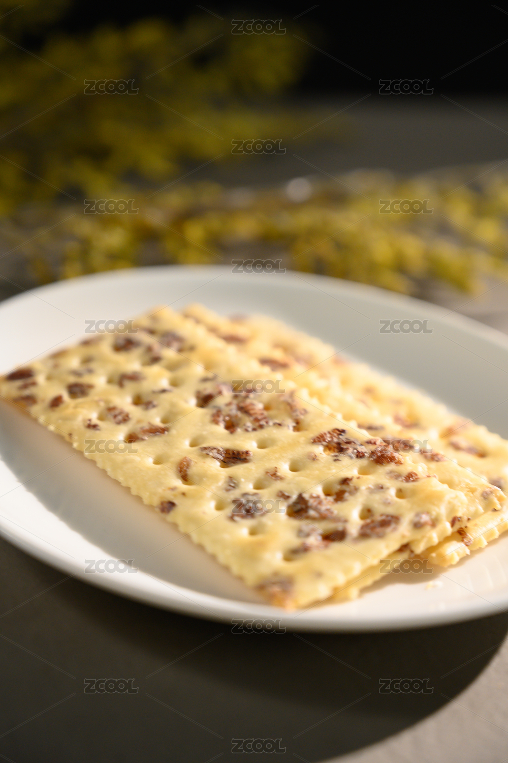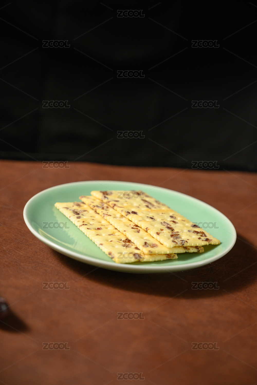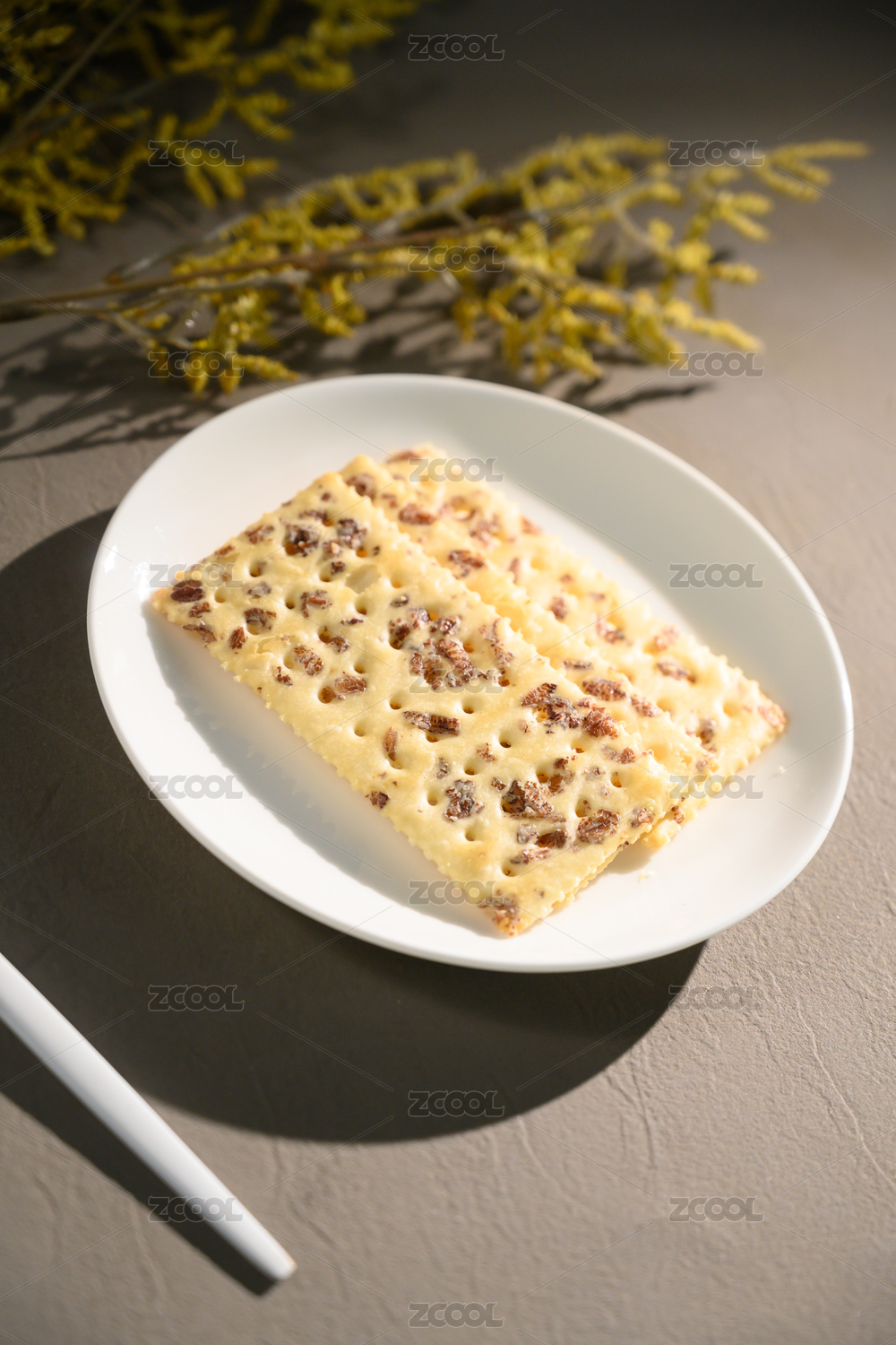 桌面上的盤子里的美味可口的黑麥蘇打餅