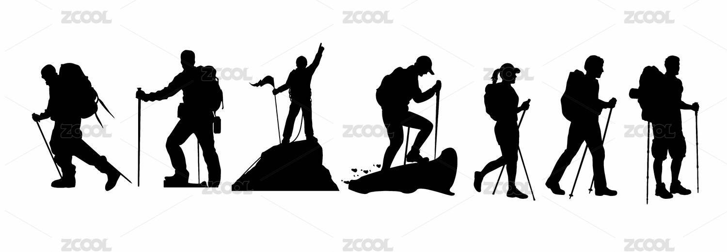 徒步登山人物動作剪影