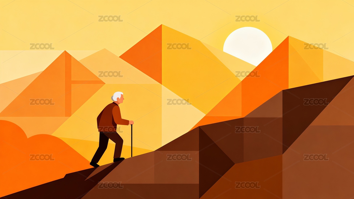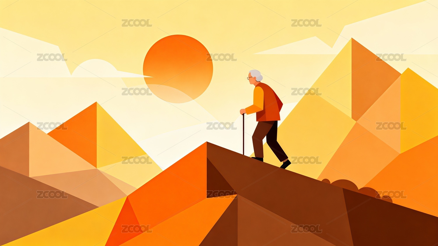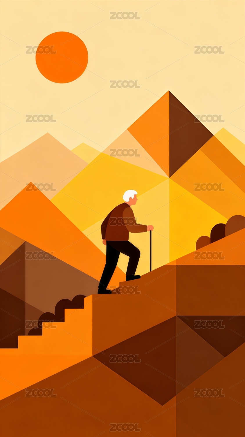 重陽節(jié)老年人登山扁平風(fēng)格插畫