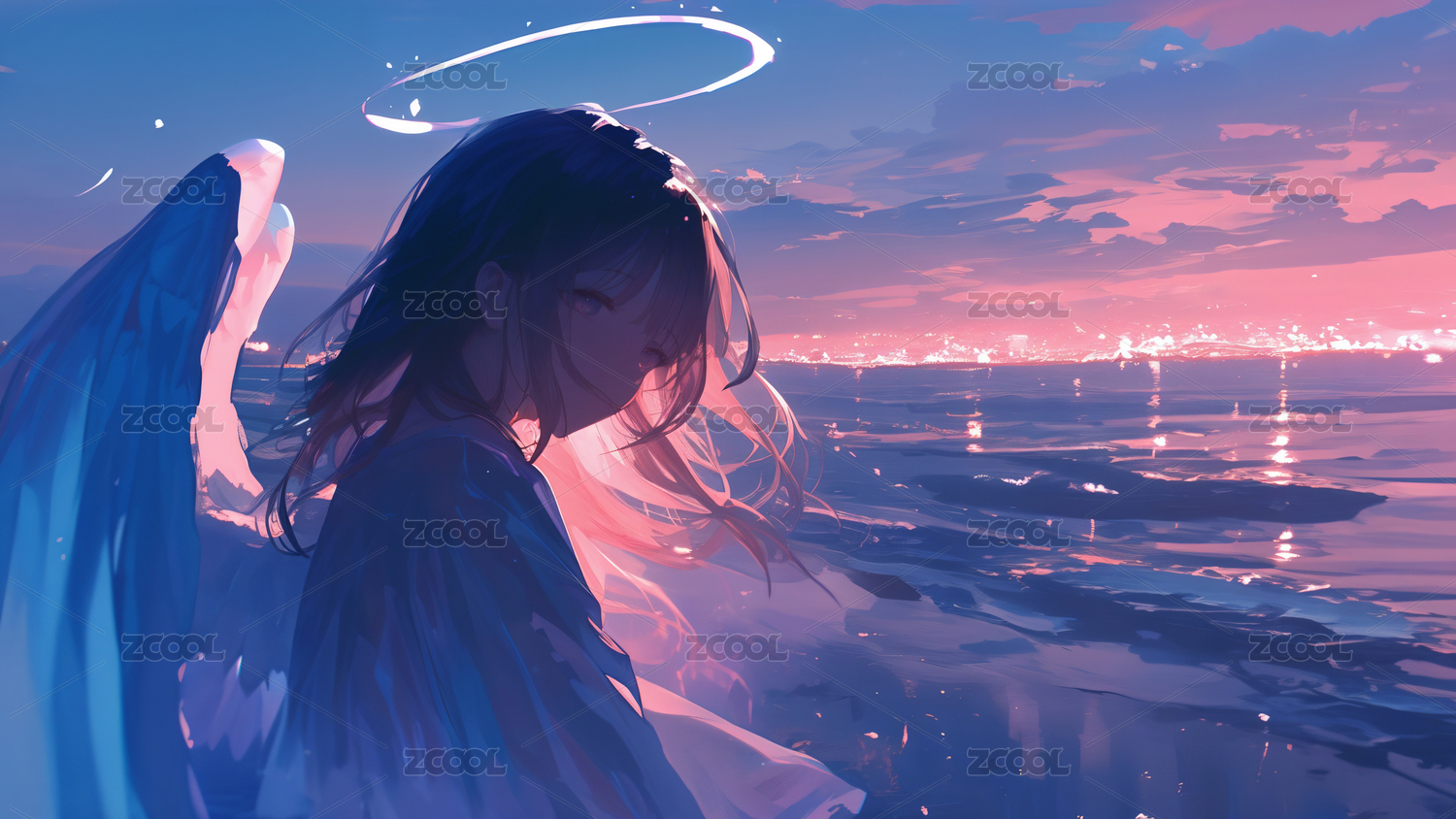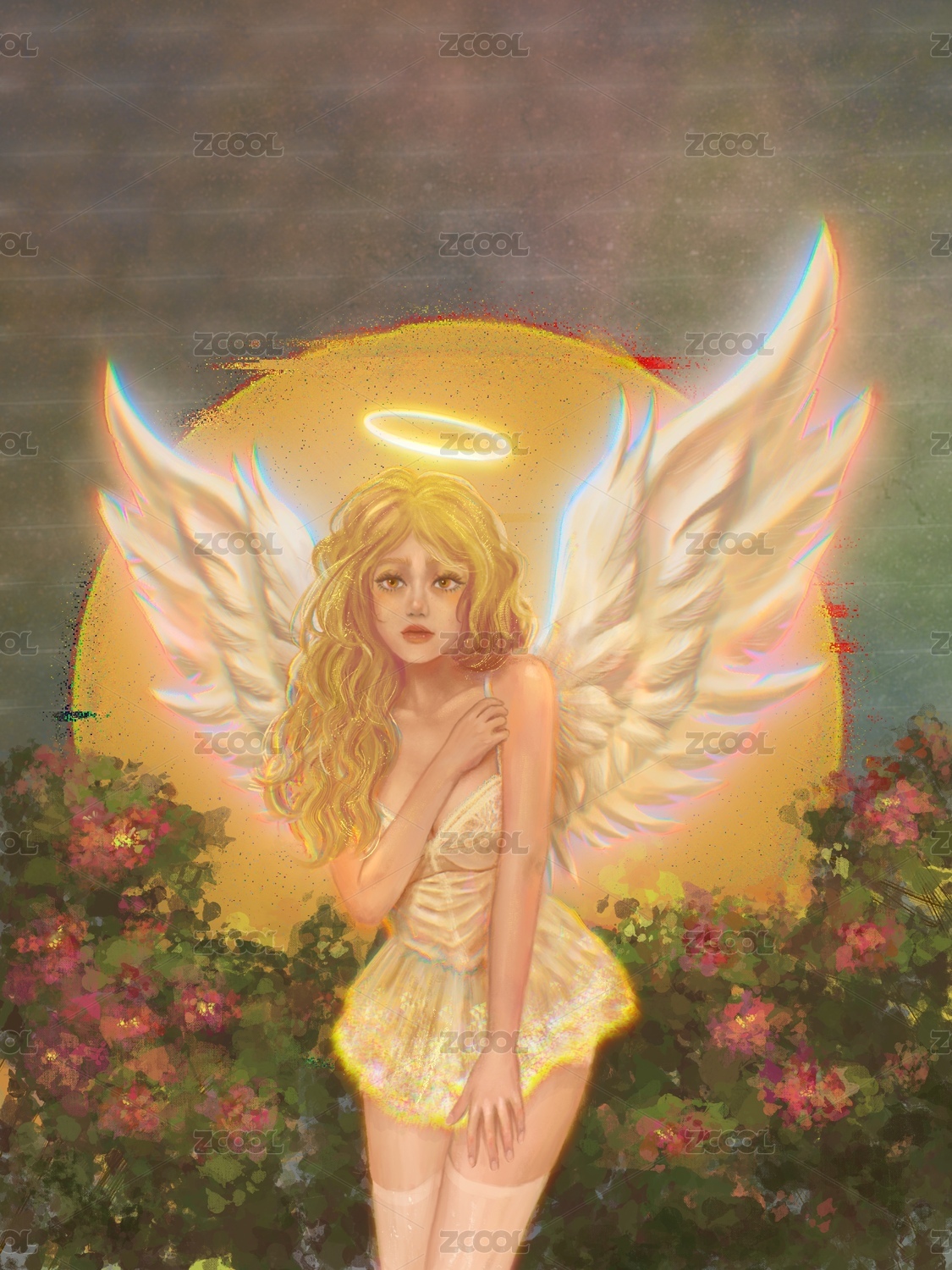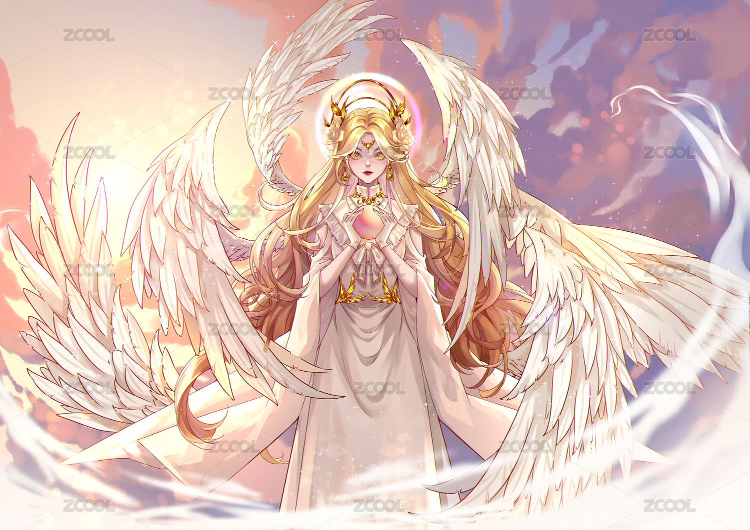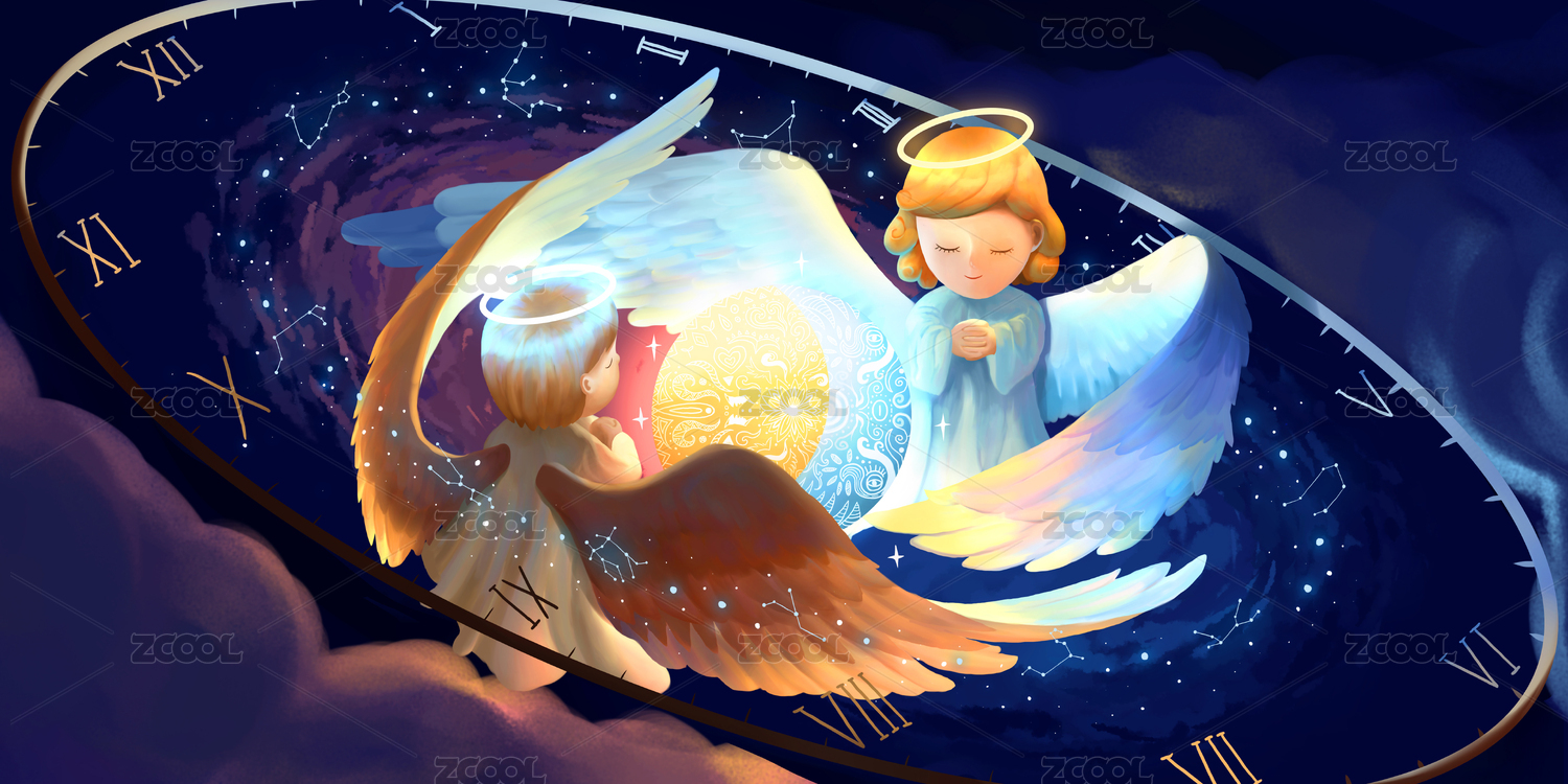 一對(duì)天使守護(hù)著日月與永恒的時(shí)間