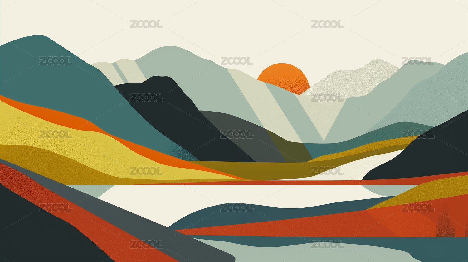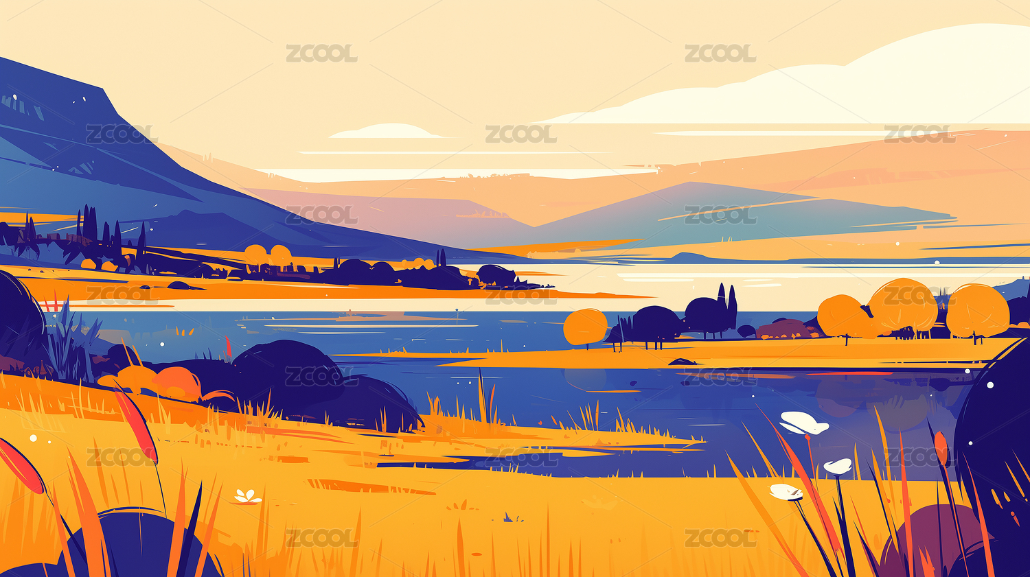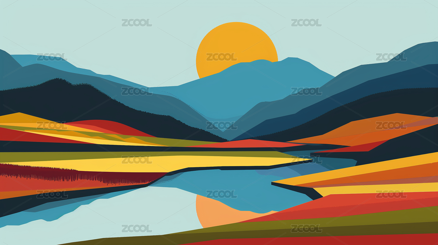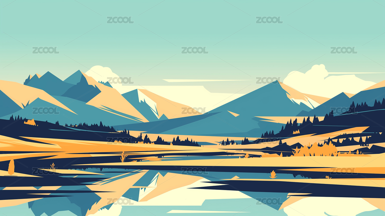 多彩的秋季山谷景觀扁平畫風(fēng)